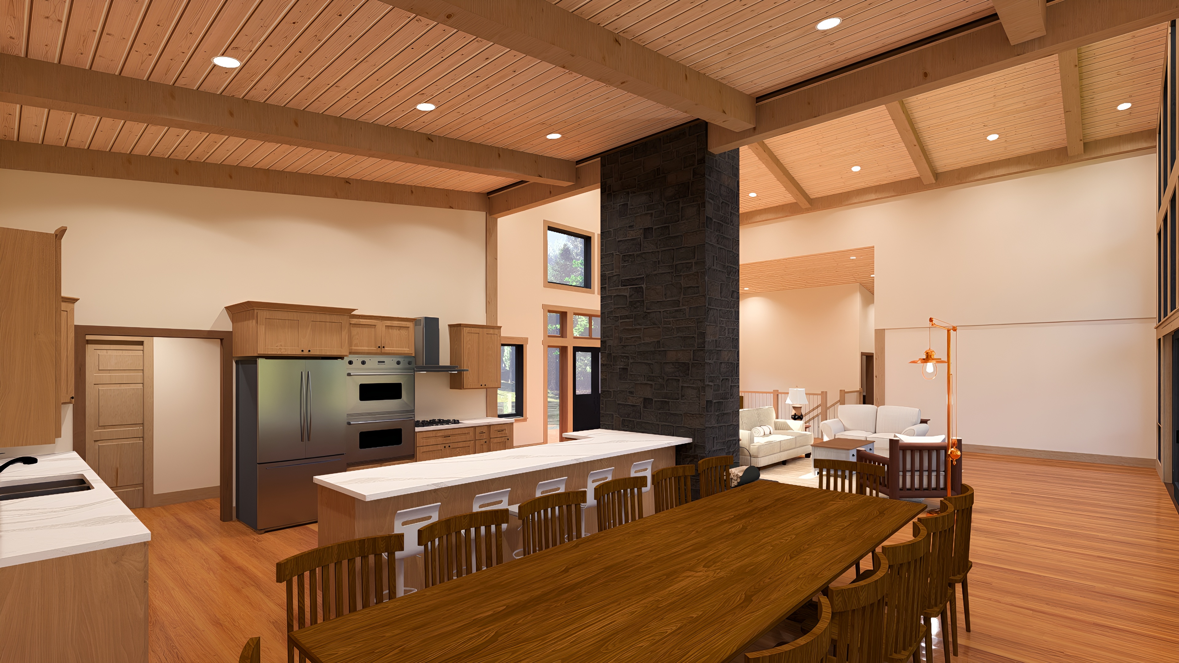 make this look realistic day time scene add some items on the table tops add 1 painting on the wall