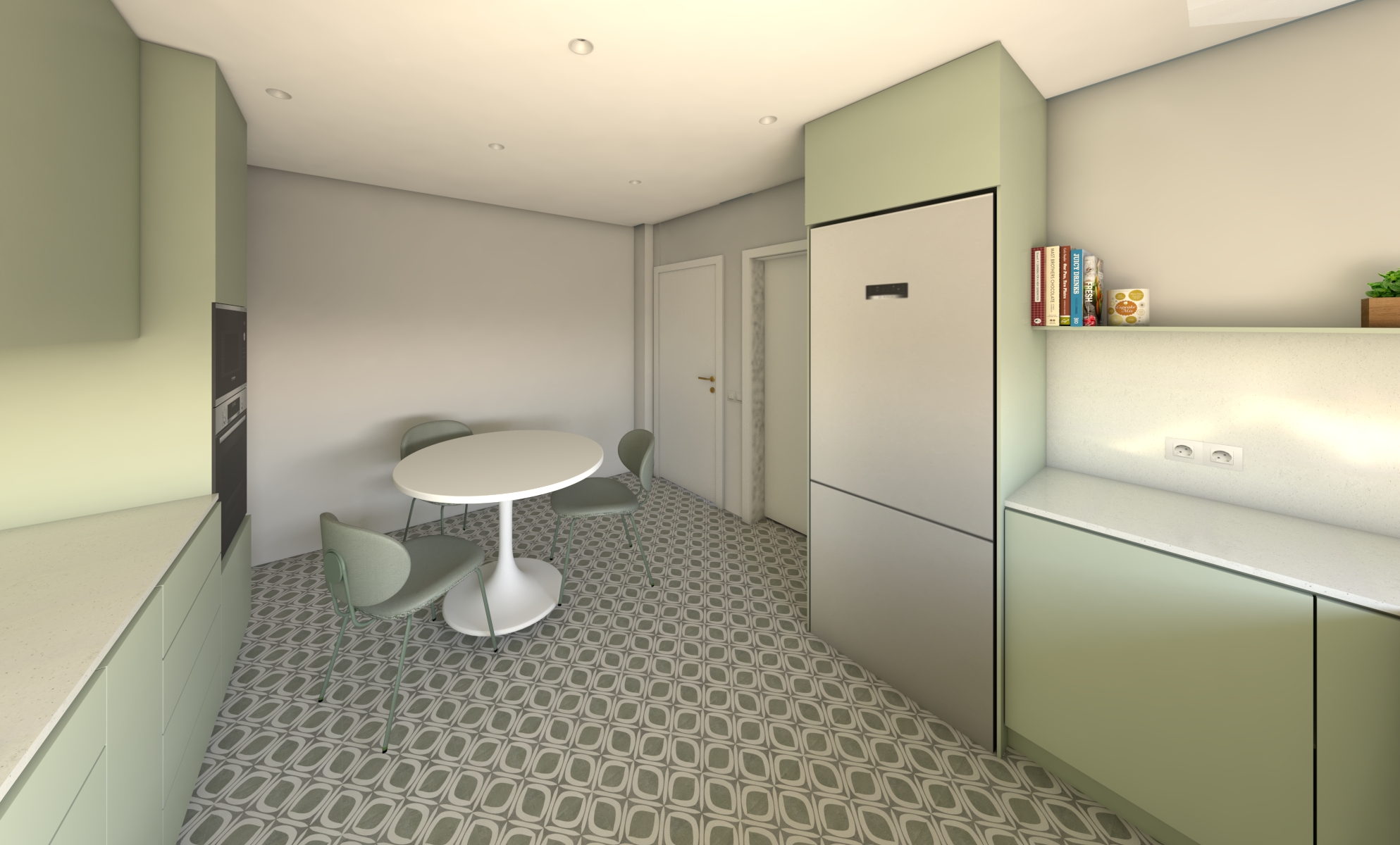 make a super faihful render from the image the wal ist creammy white and the cabinet ist more lihgt olive grren