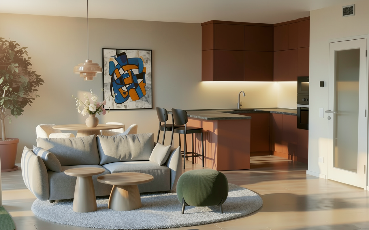 modernist exterior shot use the provided architectural model exactly as reference do not modify the architecture proportions or geometry material placement must match the design exactly material assignments garage wall natural stacked stone main house walls smooth beige stucco entry tower volume horizontal wood siding from bottom to top with no stucco interruption wall beside the front door horizontal wood siding roof fascia and trim dark charcoal metal garage door black framed glass panelsthe vertical entry tower must be fully clad in horizontal wood siding from the base of the wall all the way to the roof line no stucco should appear on this tower volume wood siding description modern horizontal cedar siding warm natural brown tone visible grain consistent board spacing subtle variation between planks explicit restriction no stucco on the tower no stone on the tower stone description natural stacked desert stone only on the garage wall lighting bright palm springs midday sun with neutral daylight color balance environment palm springs residential neighborhood with desert landscaping agave plants gravel ground cover concrete driveway curb and asphalt street sky deep blue desert sky with thin wispy cirrus clouds camera professional architectural real estate photograph full frame dslr 35mm lens f 8 iso 100 rendering style ultra photorealistic architectural photography with realistic materials and subtle imperfections architecture