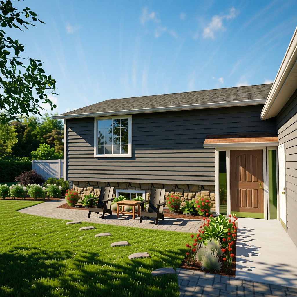 photorealistic architectural rendering enhancement of the provided image preserve the exact building geometry proportions layout and architectural design with no structural or compositional changes do not add remove or alter any elements maintain the original camera angle framing and perspective enhance material realism using high quality pbr textures refined concrete with subtle surface variation realistic painted render walls natural wood cladding grain and true to life glass transparency with accurate reflections and refractions improve metal and glass balustrades with physically correct reflections and edge definition apply natural global illumination with soft bounce light realistic ambient occlusion and balanced exposure add subtle sun glare on glass surfaces gentle reflections and believable light falloff use a soft late afternoon or early evening natural daylight mood with warm highlights and cool shadows for depth enhance landscaping realism natural grass variation improved shading and realistic ground contact shadows refine sky lighting with soft cloud diffusion while keeping the overall scene calm and realistic increase overall sharpness depth and realism without stylization clean professional architectural visualization suitable for client presentation important do not change the structure design materials selection or layout do not add people vehicles or new objects do not remove or modify the existing title block text or its placement keep it fully visible and unchanged