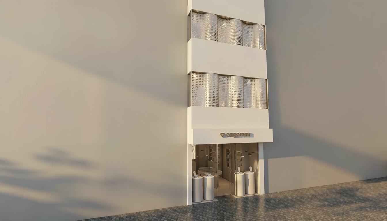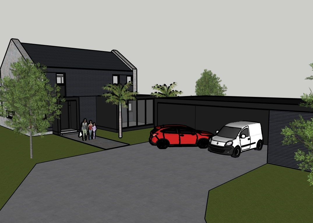 render only visual maintain colour antracit aluminium pront and back like roof left and rigt facade made of stone blocks