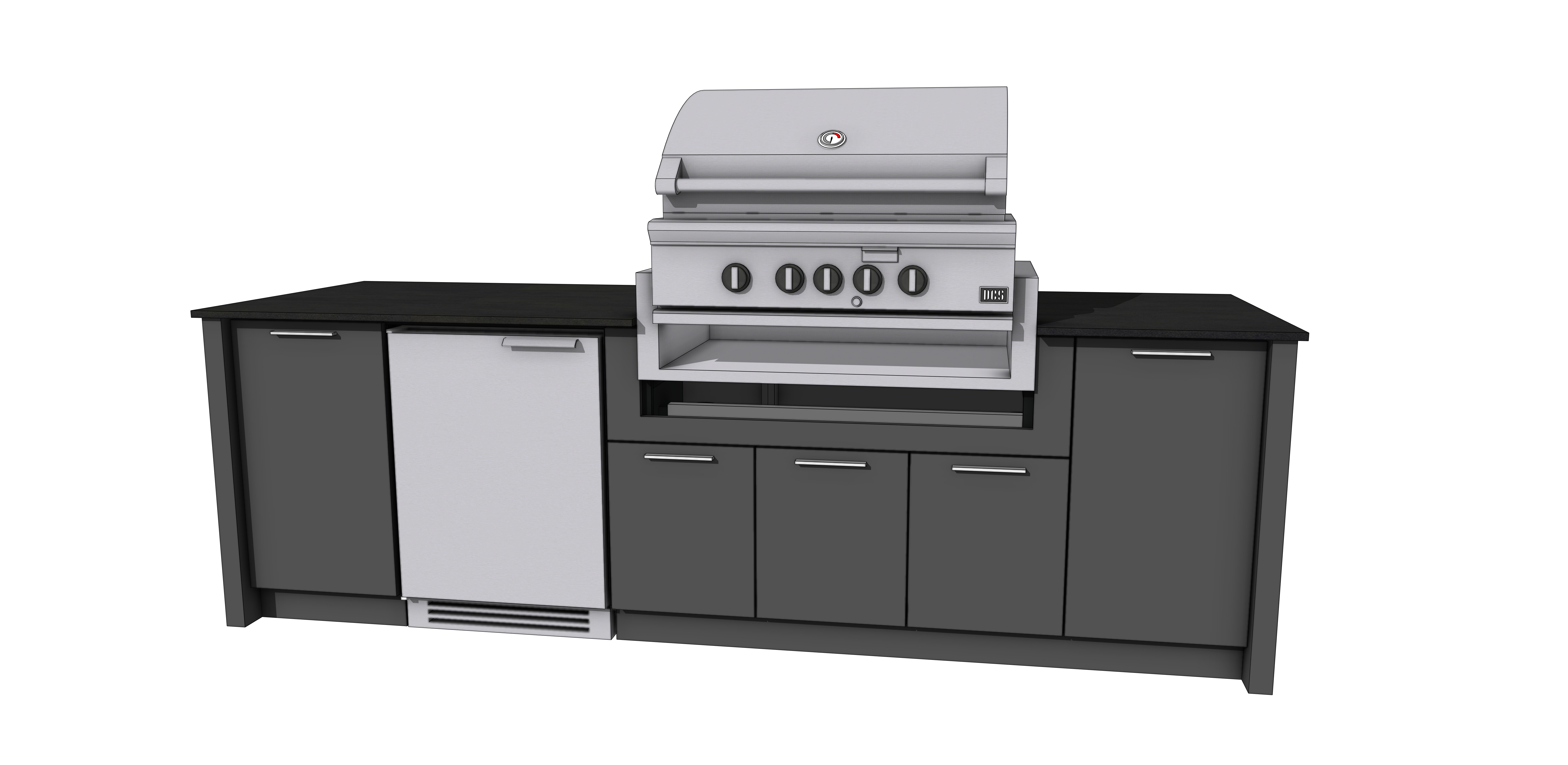 ultra realistic outdoor kitchen visualization featuring the evo collection the entire kitchen door fronts drawers side panels and back panels is made of nexbond panels in the color storm 4002 with a smooth painted finish and a subtle satin