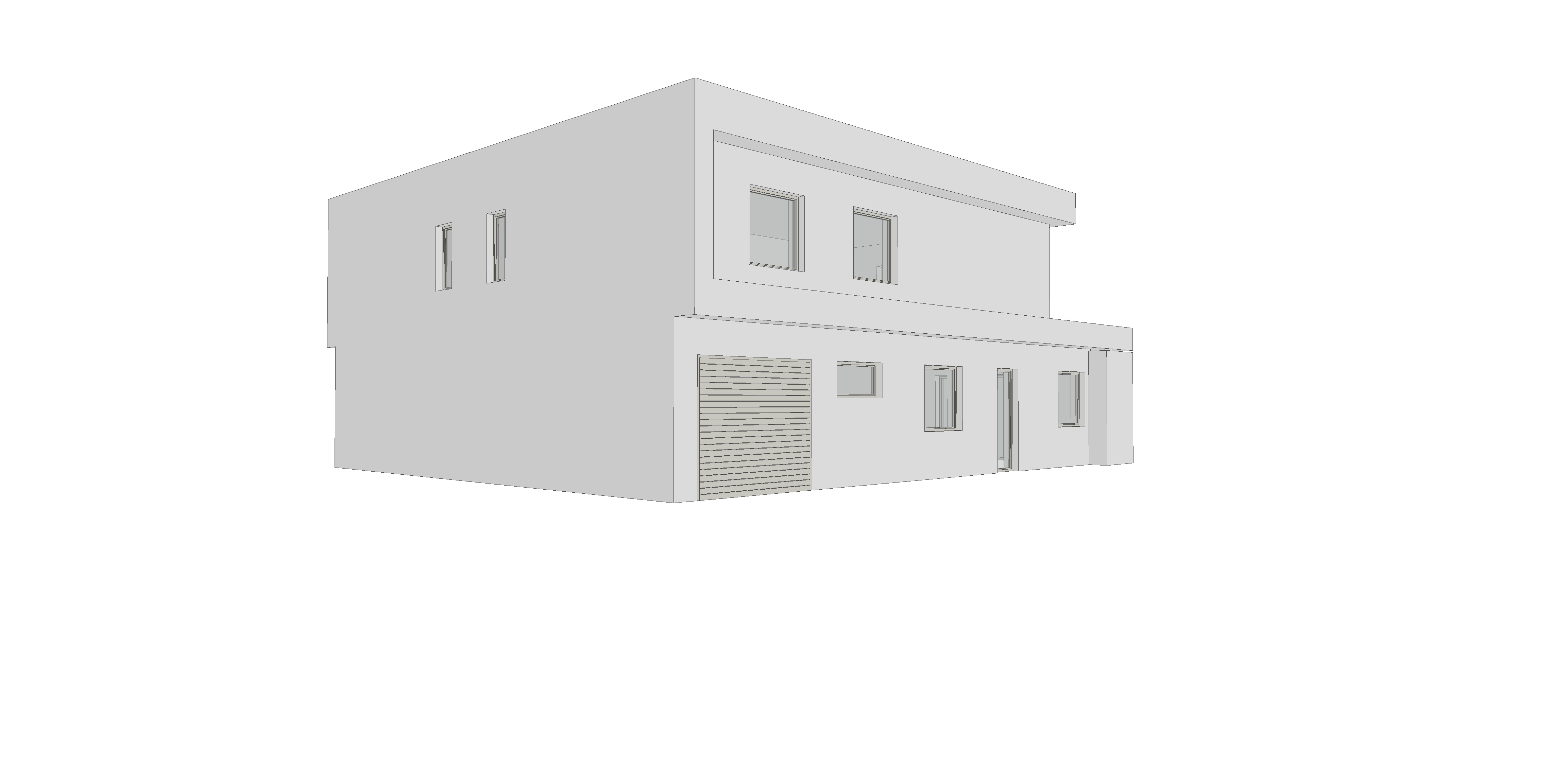 modern exterior shot create a 3d architectural rendering of a modern two story house with clean minimalist lines the building features large sliding glass doors on the ground floor multiple rectangular windows on both floors and a flat roof the exterior is painted in a monochromatic white or light grey tone and the design emphasizes simplicity and functionality the perspective is angled showcasing both the front and side of the house against a plain white background architecture