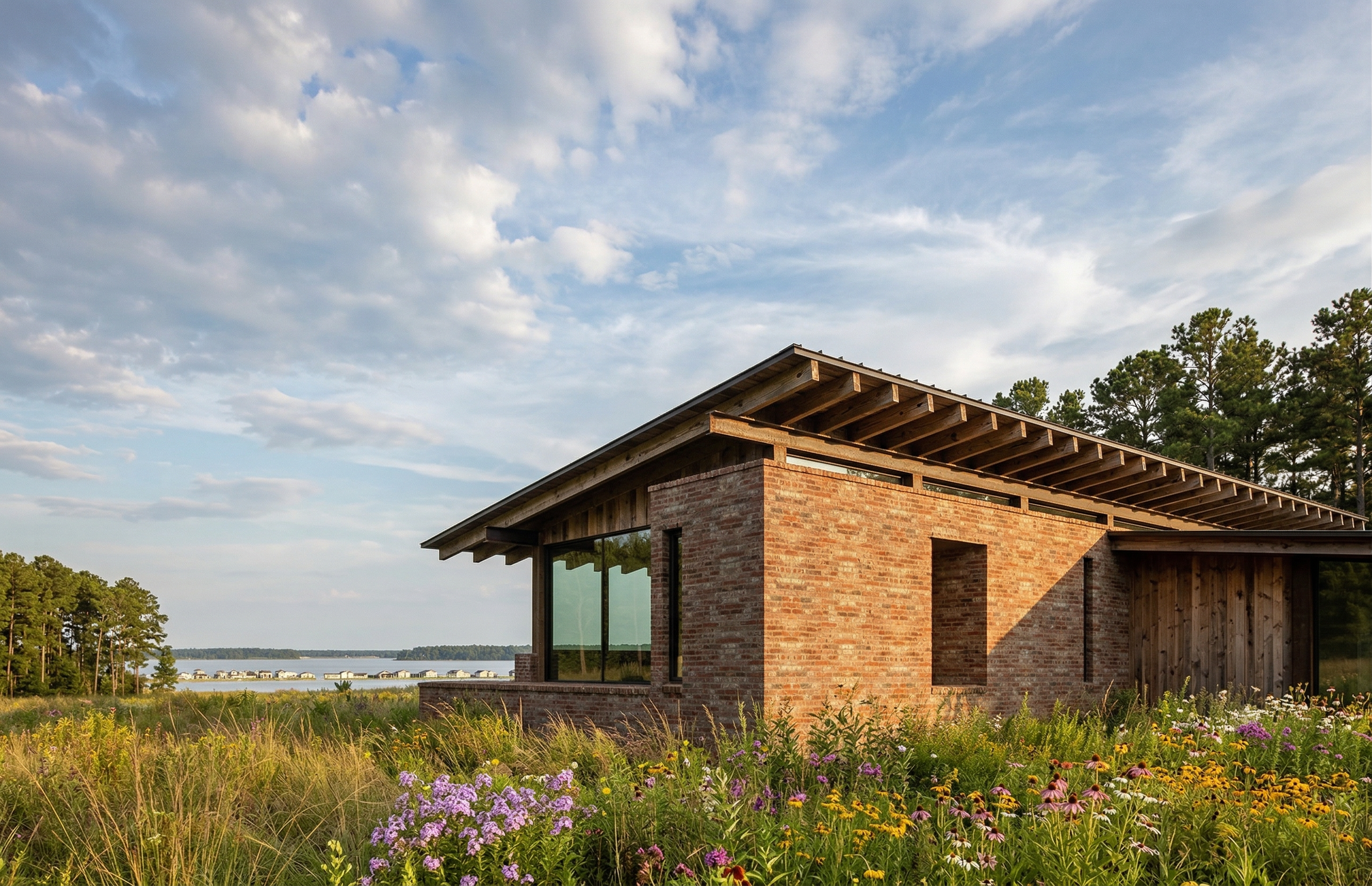 add white vase with cherry blossoms on the island moody light cabinets in matte flat doors do not change cabinets nor add open shelves don t add new cabinets don t add new windows cloudy weather light inside wall glass cabinet glass door is semi mirror bronze glass room filled with ambient light ceiling matte