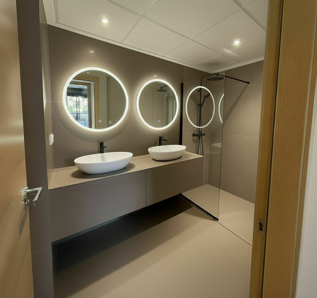 sustituye los lavabos de superficie por lavabos encastrados en el mueble