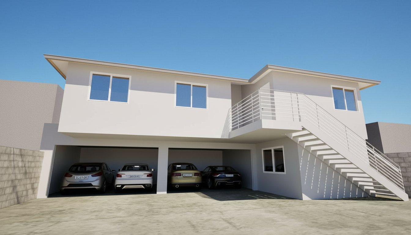 exterior shot create a watercolor version of the exterior maintain the size and rations from the floor plans there should be one two car garage and one single car garage the front door should have sidelight windows next to it and then windows above the single car garage should have three sections