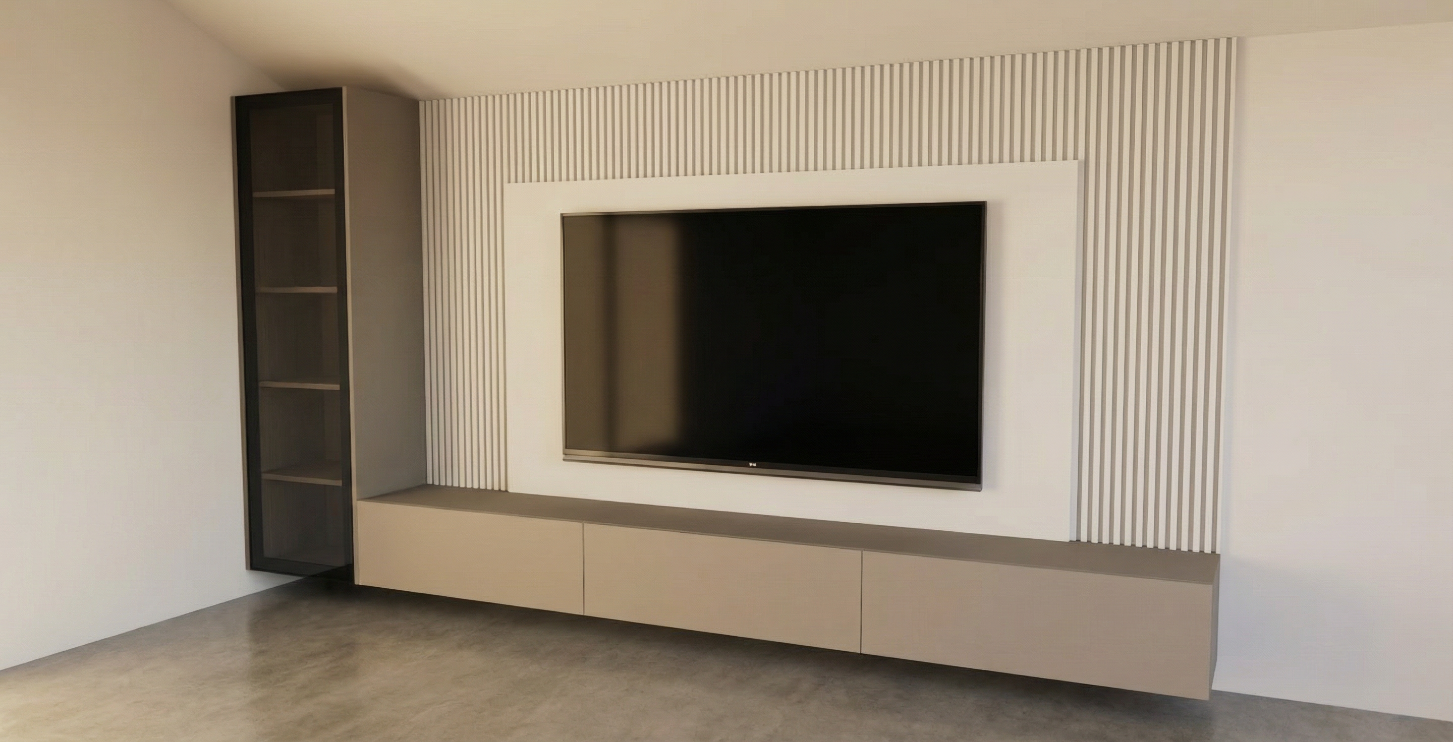put 7 leafless birch trees along building