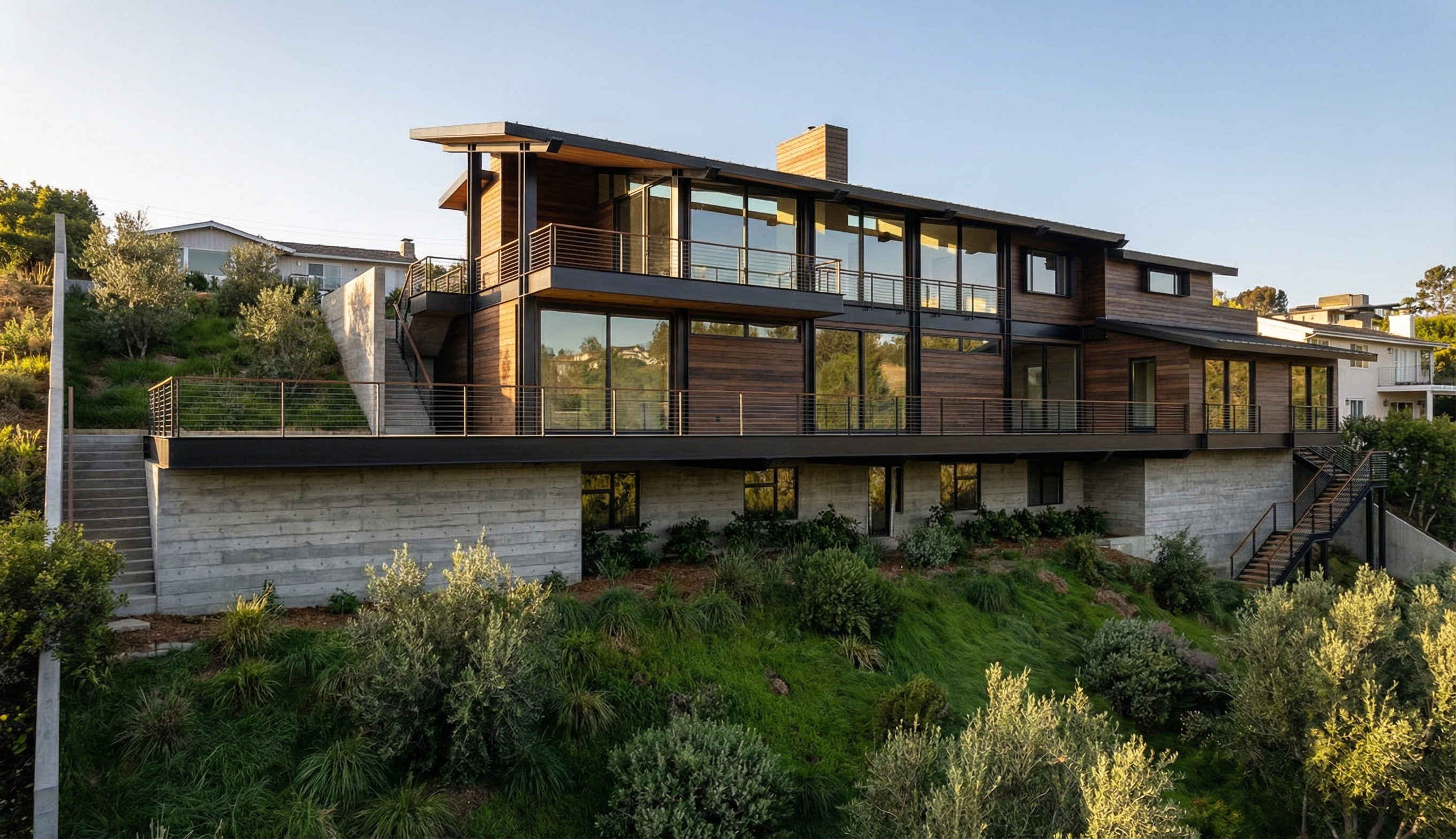 take this drawing which shows rear side side elevations and plan view and make a 3d render the side elevations only show a portion of the house as well as the plan view the building is of victorian edwadian era in the uk its has traditional red brick with lime mortar the windows of the house are white mainly sliding sash but with 2 large casement windows on the right hand side of the house on the right of the house is a semi circle rounded feature where the 3 windows are set within in this area there are some small shrubs underneath the first casement window on the left of that casement window growing up the brickwork is some wisteria above the windows is a soldier brick detail the conservatory is a wooden conservatory finished in farrow and ball elephants breath the cappings holding the glass inplace are lead to the left of the house is a brick wall with wooden gates finished in farrow and ball elephants breath in front on the brick wall is some bushes and shrubbery the roof is slate with leaded hips there is a large overhanging soffit with a moulded ogee aluminium guttering which is all finished in cream ral 10 b 15 the house is set in the country side in front on the house is an indian limestone patio and then grass