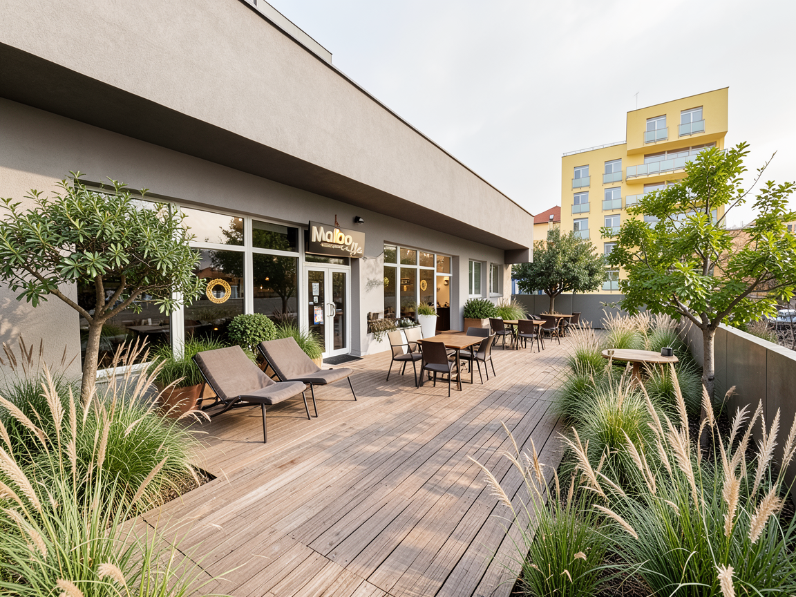 calm contemporary residential atmosphere quiet upscale neighborhood late afternoon golden hour light warm and soft sunlight low sun angle long gentle shadows clear sky with light scattered clouds clean air subtle haze natural daylight balance relaxed serene mood timeless elegant peaceful residential feeling photorealistic architectural lighting soft global illumination natural contrast