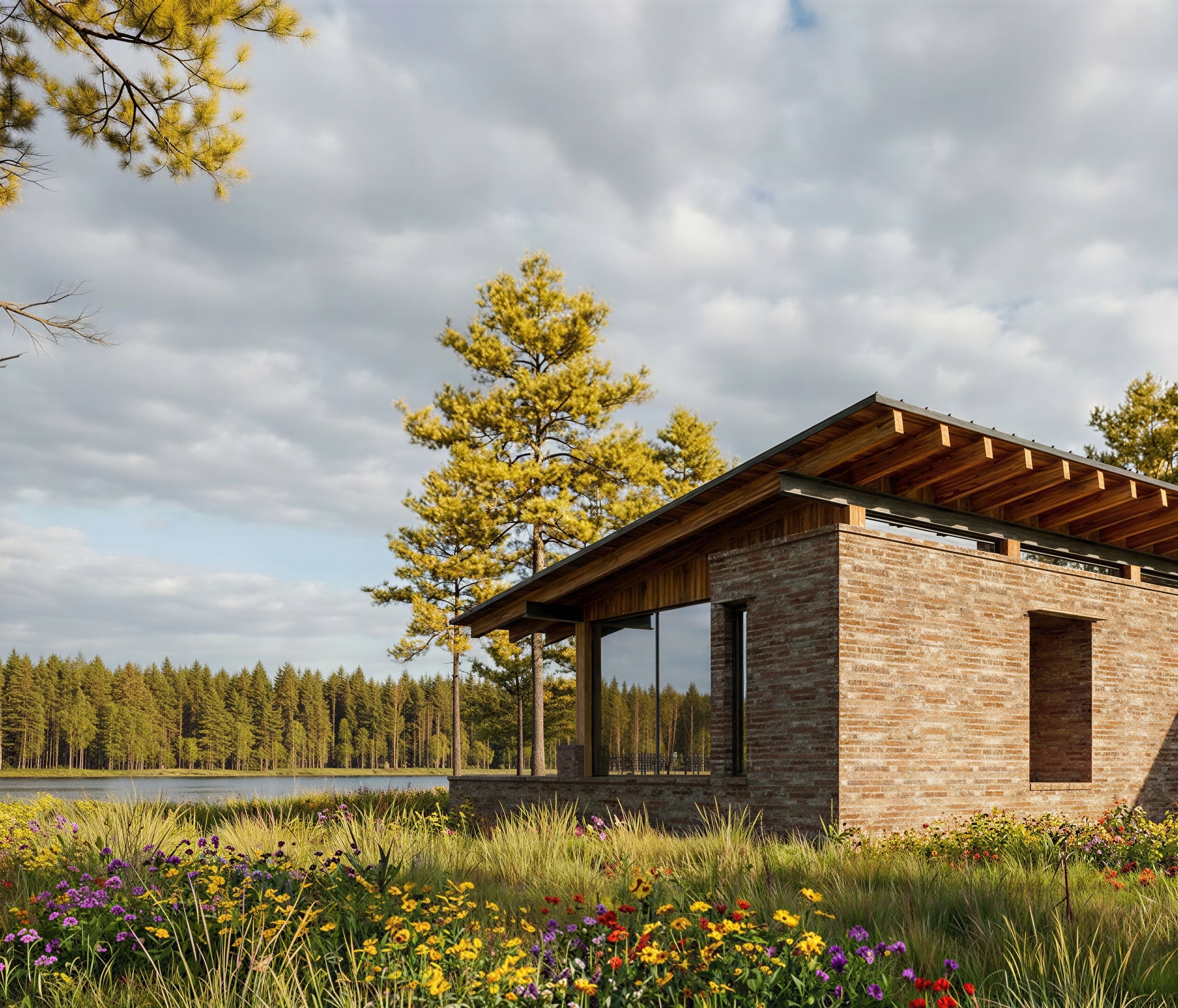 remove pond and replace with wild louisiana grasses and yellow pine trees