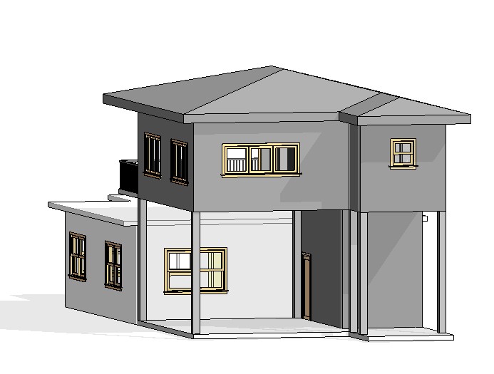 very light peach colored walls with light color metal roof in tropical setting with tall palms and tropical hardwood trees looking out over coral shore to a tranquil sunset