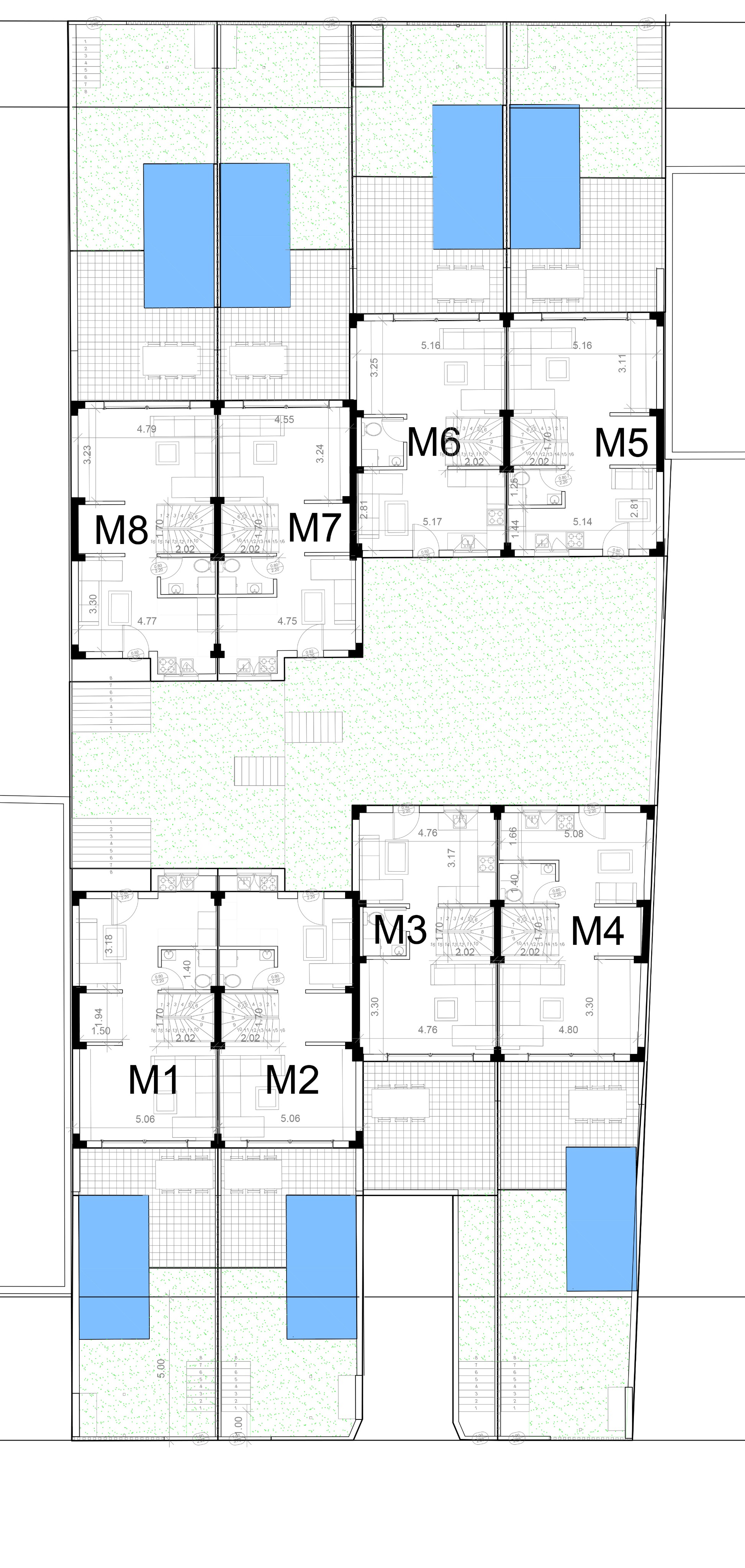 convert this floor plan into a realistic isometric 3d view of a full house show the space from an elevated angle with furniture walls and details visible keep geometry add water at the pools add vegetation at the grass use the same furniture as shows on the plan do not change the orientation of the floorplan