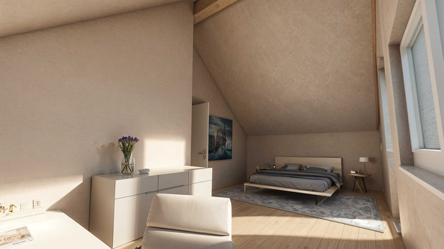 modernist exterior rendering with a cozy atmosphere soft natural lighting white matte finish walls and light wood scandinavian style flooring