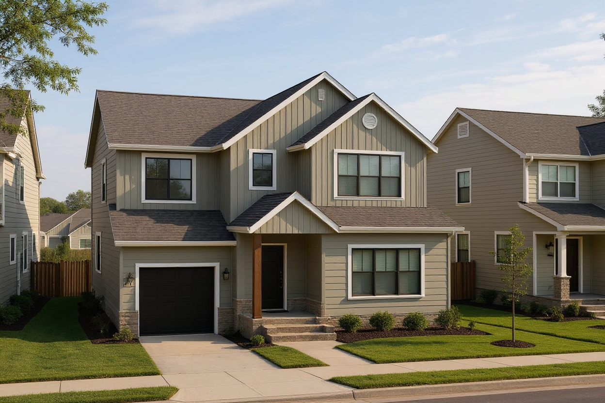 put in a neighborhood and change window and door frames to white image should have two full houses next to eachother