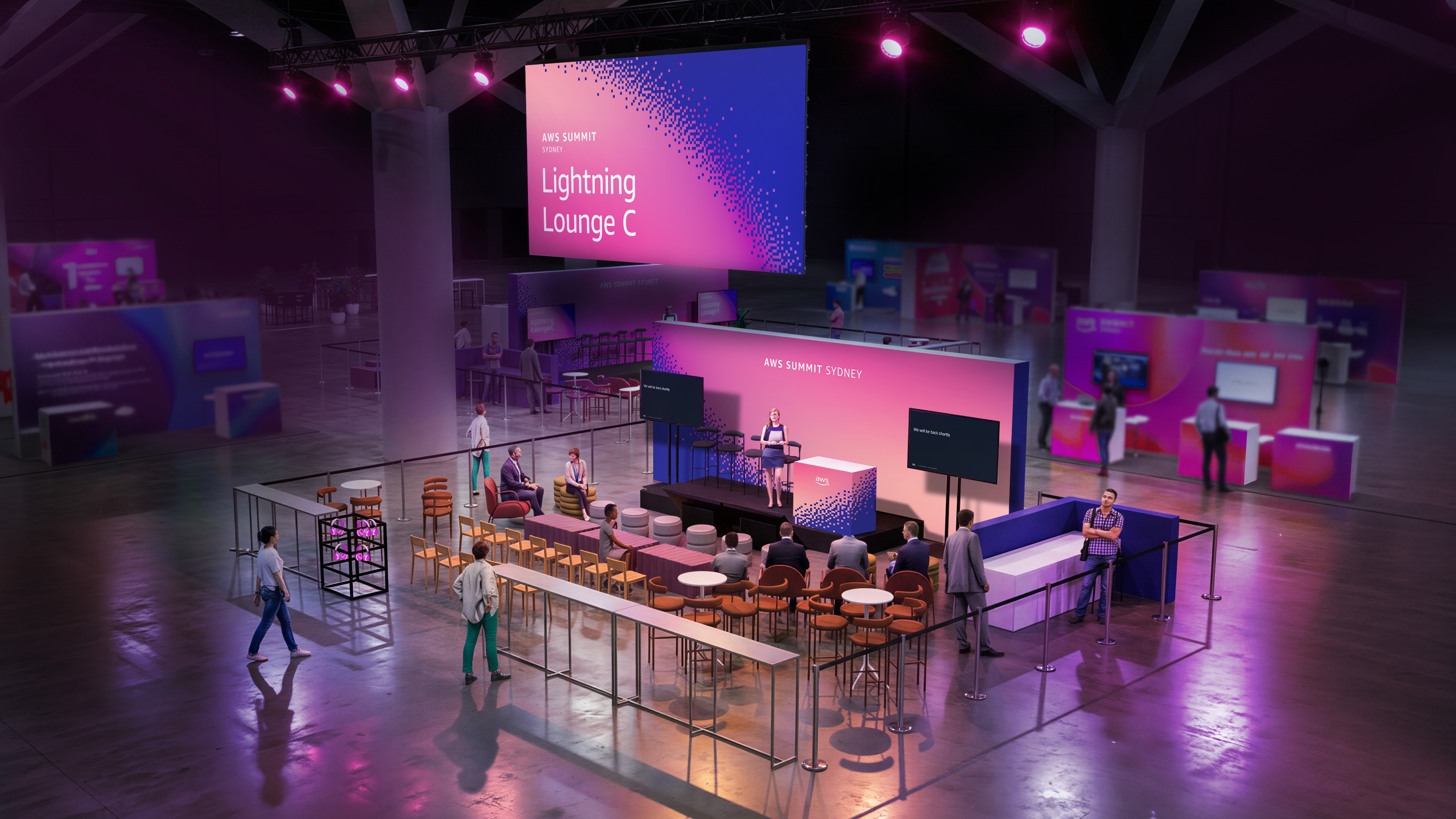 add glowing pink headphones to the audience sitting on seats add soft blue small square gobo lights on the floor