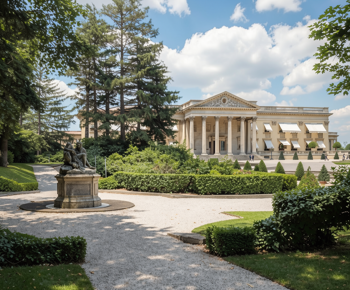 do not change perspective do not change anything let building show behind trees let building show behind the trees partly cloudy day