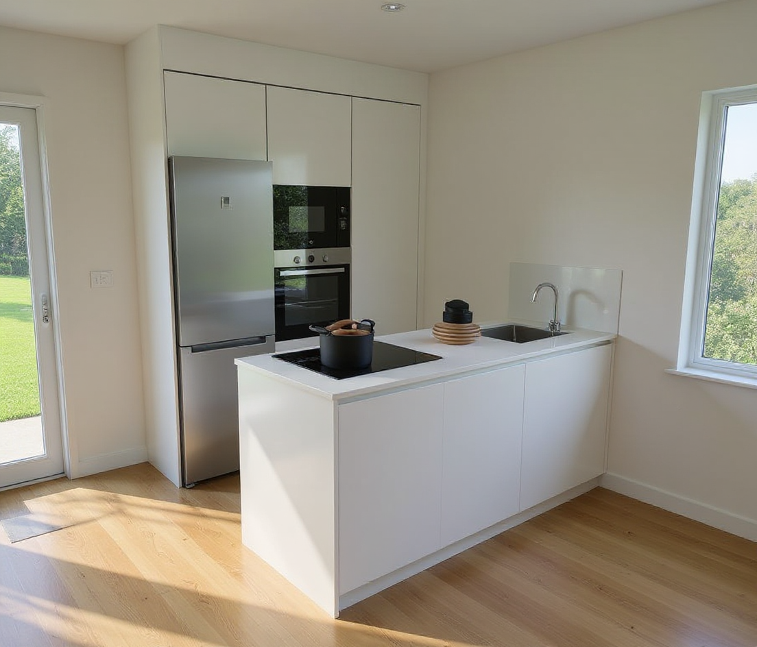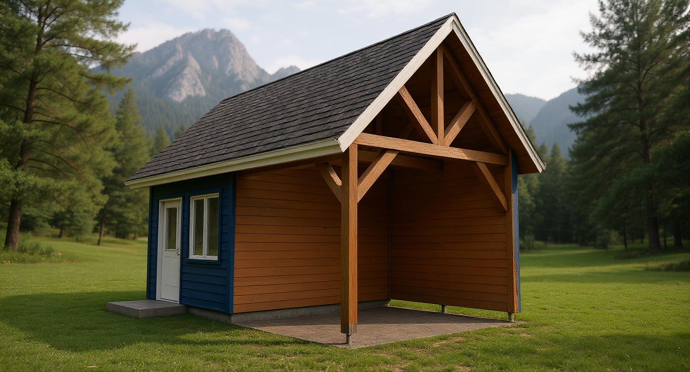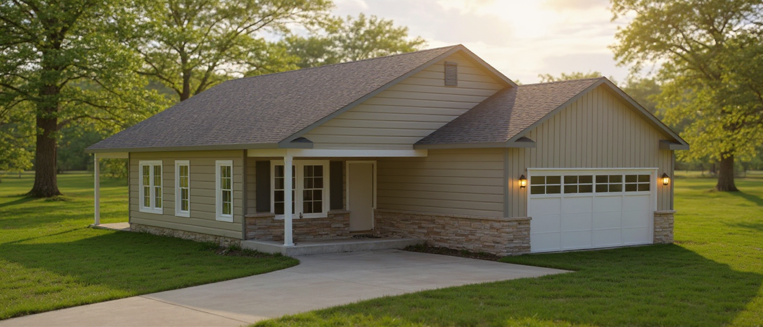 a modern farmhouse white and with metal dark gray roofing the right tower at the rear are colored with greyish blue board and batten while the rest of the house including the right most wall has with white hardi plank horizontal exterior walls the lower portion of the house are with light gray color walls board and batten the front columns have a light gray color plain paint accent the foyer entrance is cladded with greyish wood the garage doors are canyon ridge chevron and are covered with shed roof overhang surrounded by lush greenery in florida setting surround it with palm trees and a dawn setup with lights lit up there is a big backyard and a swimming pool and a lake at the rear
