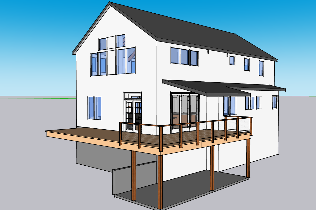 exterior shot add some lush forest and lawn in the back round and one door in the lower section of the houser