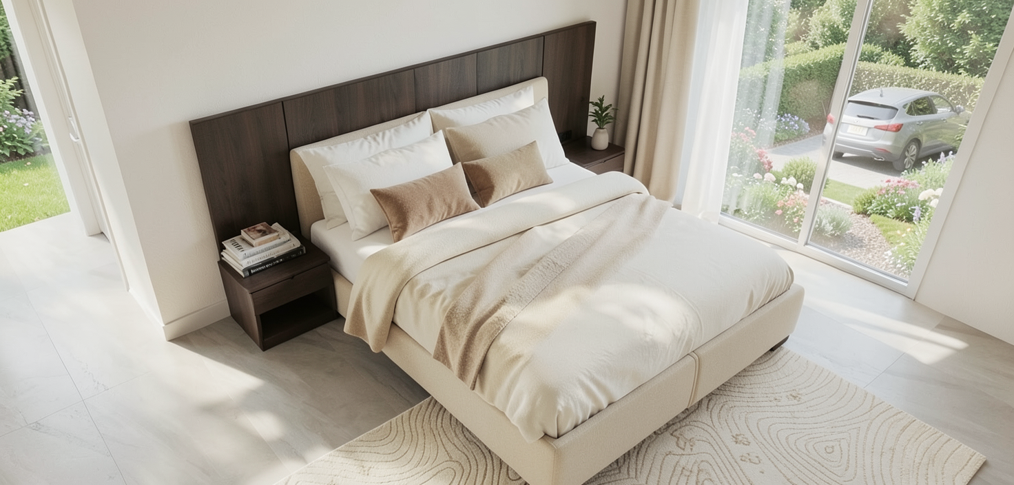 e una sala per cene luce soffusa a terra abbiamo un pavimento in parquet in rovere chiaro continuo e liscio sulla parete di sinistra c sopra alla cucina un tubo in acciaio zincato la cucina ha una strip led sotto i pensili e il fondo in piastrelle verde opaco in rilievo leggermente bombate non c la strip led nello zoccolo della cucina nella parete di fondo dipinto un arco verde al centro abbiamo una tavola con il piano in marmo calacatta e gambe in ferro nero sopra alla tavola ci sono delle lampade a sospensione in ceramica opaca verde e sono accese le sedie sono in legno di colore verde la parete di destra bianca e ci sono sgabelli in legno con un pianale bianco con sotto una strip led sopra al pianale ci sono solo le stesse piastrelline del fondo della cucina metti qualche piatto sparso sulla tavola per simulare una cena gi iniziata e qualche attrezzo sulla cucina in esterno simula una luce di tarda serata con sfondo di alberi che si intravede dalla tenda
