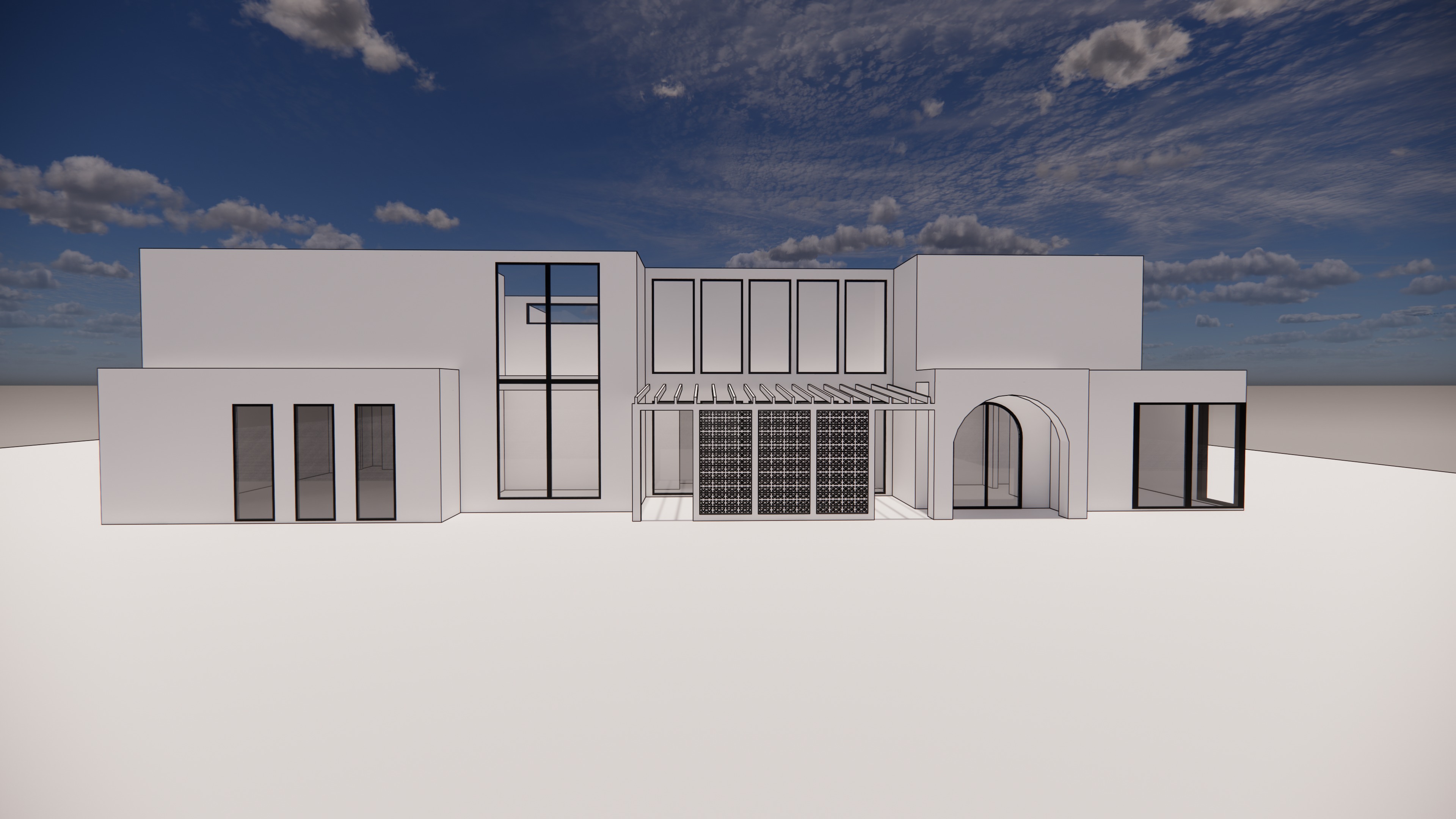 help me invision how this can look as a modern spanish style home need you to add in the roof keep it moderna nd sleek no steep gables im okay with some flat roofs add gables