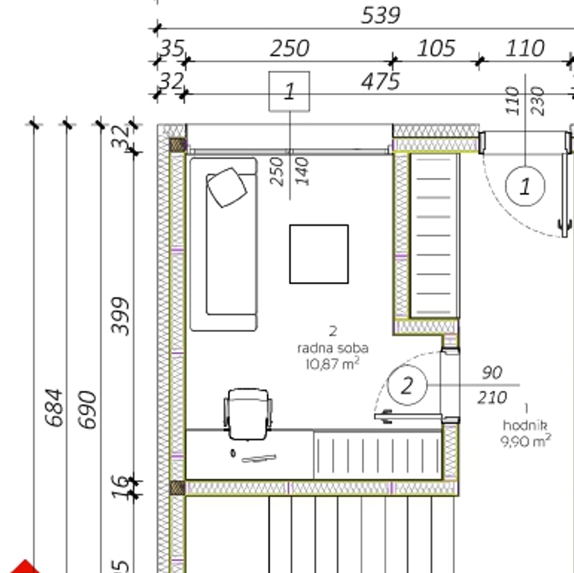 convert this floor plan into a realistic isometric 3d view of a full house show the space from an elevated angle with furniture walls and details visible create an isometric 3d interior model strictly based on the provided architectural floor plan critical geometry absolute priority the layout must exactly match the provided floor plan preserve all wall offsets recesses and irregularities the upper right wall must remain recessed exactly as in the plan do not straighten or simplify maintain correct proportions and wall thickness furniture must adapt to the space not modify it treat the plan as a cad blueprint window window height 150 cm not full height keep solid wall above the window position exactly as in the plan functional layout sofa zone place a sofa bed 160 cm width directly under the window add light rug and small coffee table maintain minimum 60 cm circulation space in front work zone l shaped desk create an l shaped desk for two users main desk along the bottom wall secondary return desk extending into the right side wall recess both desks must feel connected as one workspace provide two ergonomic chairs ensure leg space and no collision between users keep clear walking path from door into room storage add a 120 cm wide wardrobe immediately on the left after entering align it with the wall do not block door opening path mediterranean style materials light wood linen stone ceramic colors warm white beige sand terracotta olive green muted blue plants olive tree lavender herbs subtle trailing plant lighting natural light from window as main source soft ambient lighting desk task lighting rendering isometric view clean architectural visualization realistic proportions soft shadows natural light final rule geometric accuracy and functional layout are more important than visual symmetry use the first image as strict spatial reference do not reinterpret the layout use the same furniture as shows on the plan do not change the orientation of the floorplan