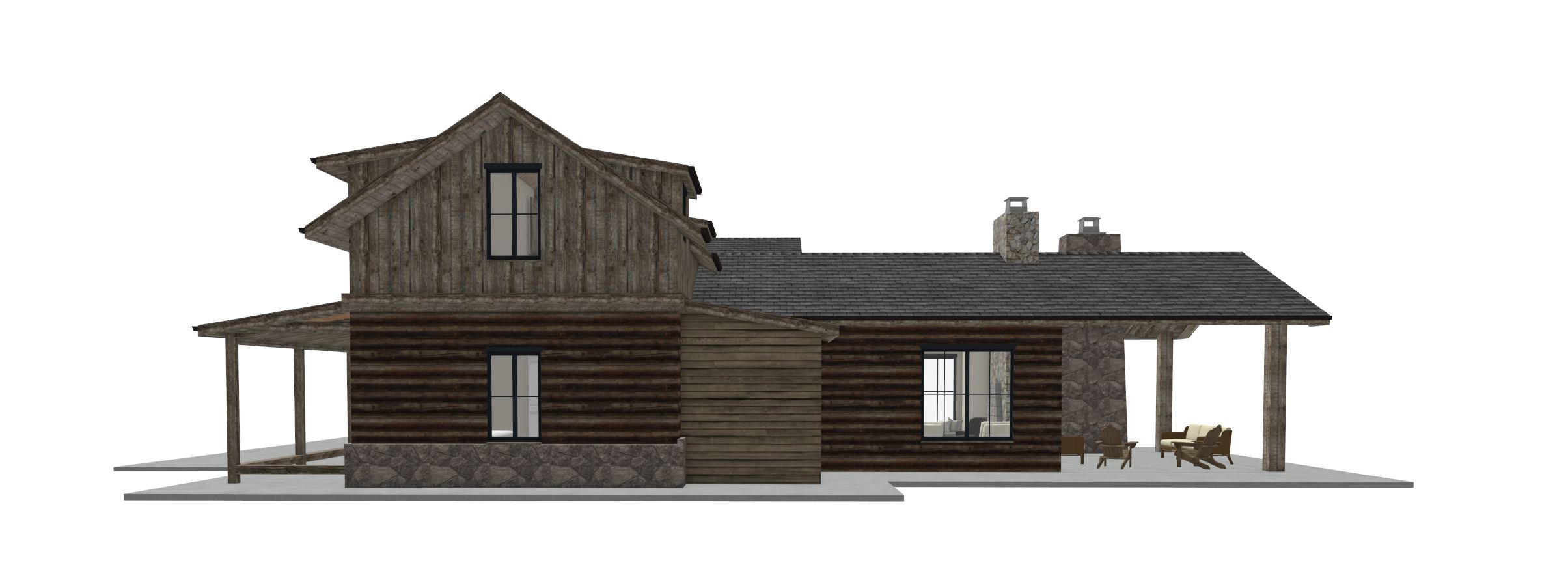 grainy watercolor render of timber frame building with reclaimed wood siding pioneer look like old watercolor in the background extensive watercolor rural and pioneer landscaping surrounding the building