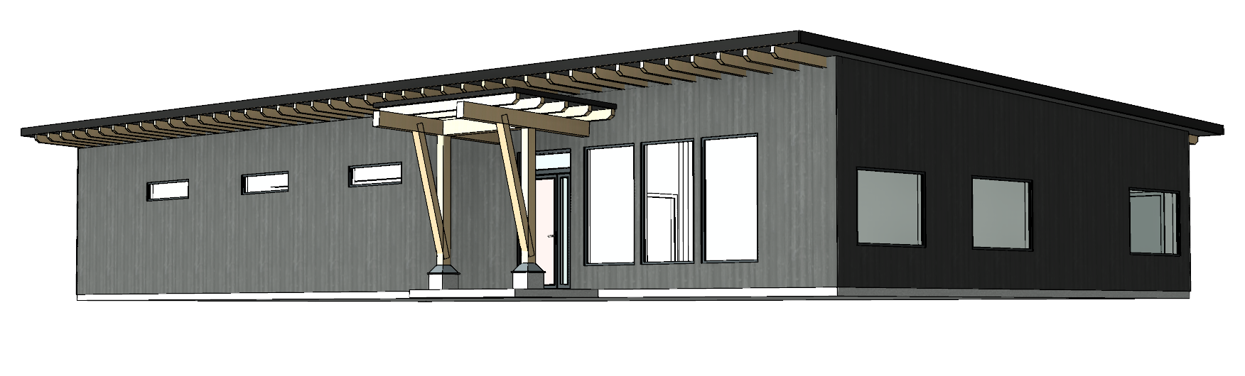 a small asphalt parking lot is in front of the building with no curbs there is a gravel road going up past the building on the right side it goes up a hill there are mountains in the background that resembles lake tahoe also lake tahoe native trees