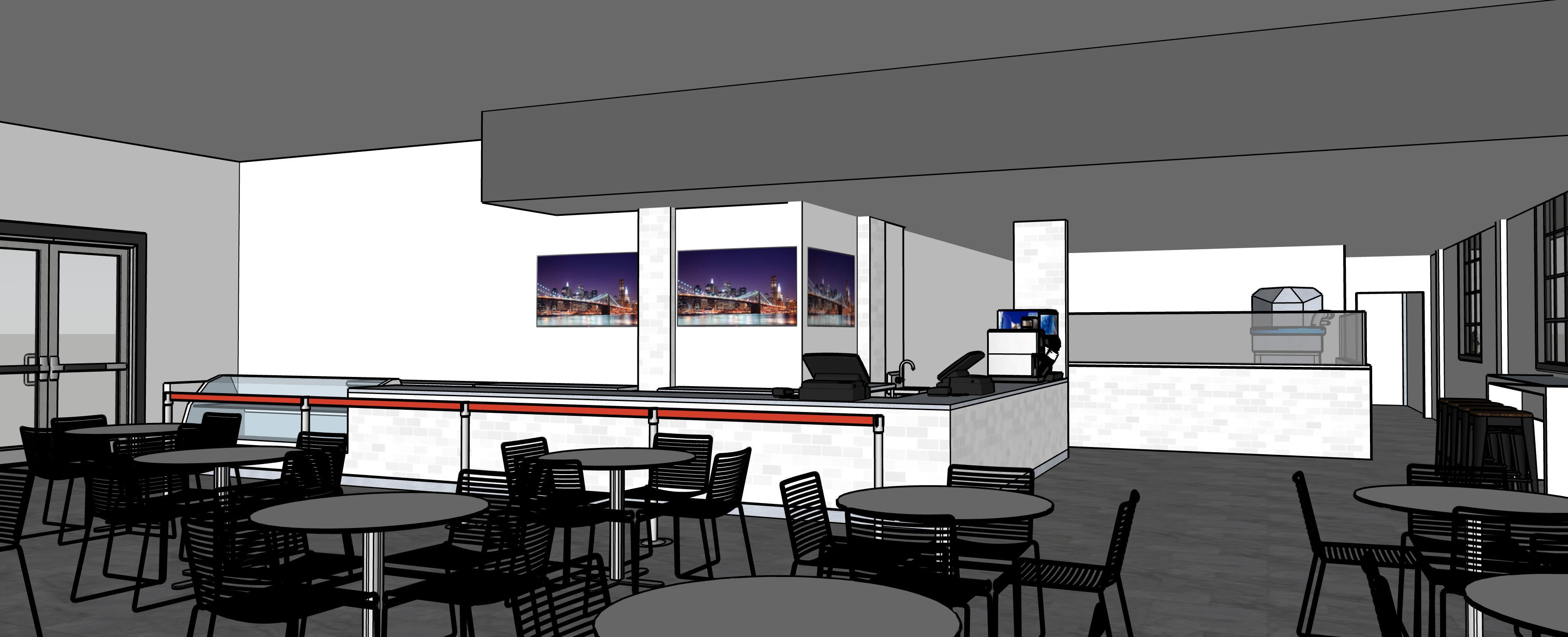 interior cafe bagels and coffee morning light