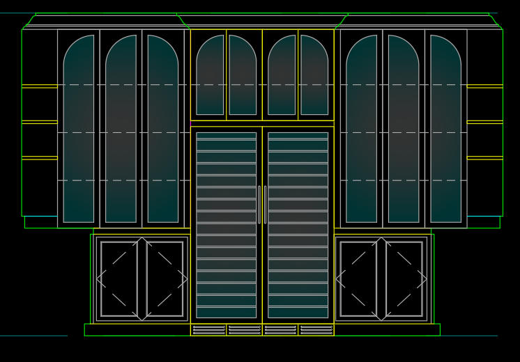 pantry with wood cabinets with glass door insets 2 wine refrigerators in the center stainless steel and glass
