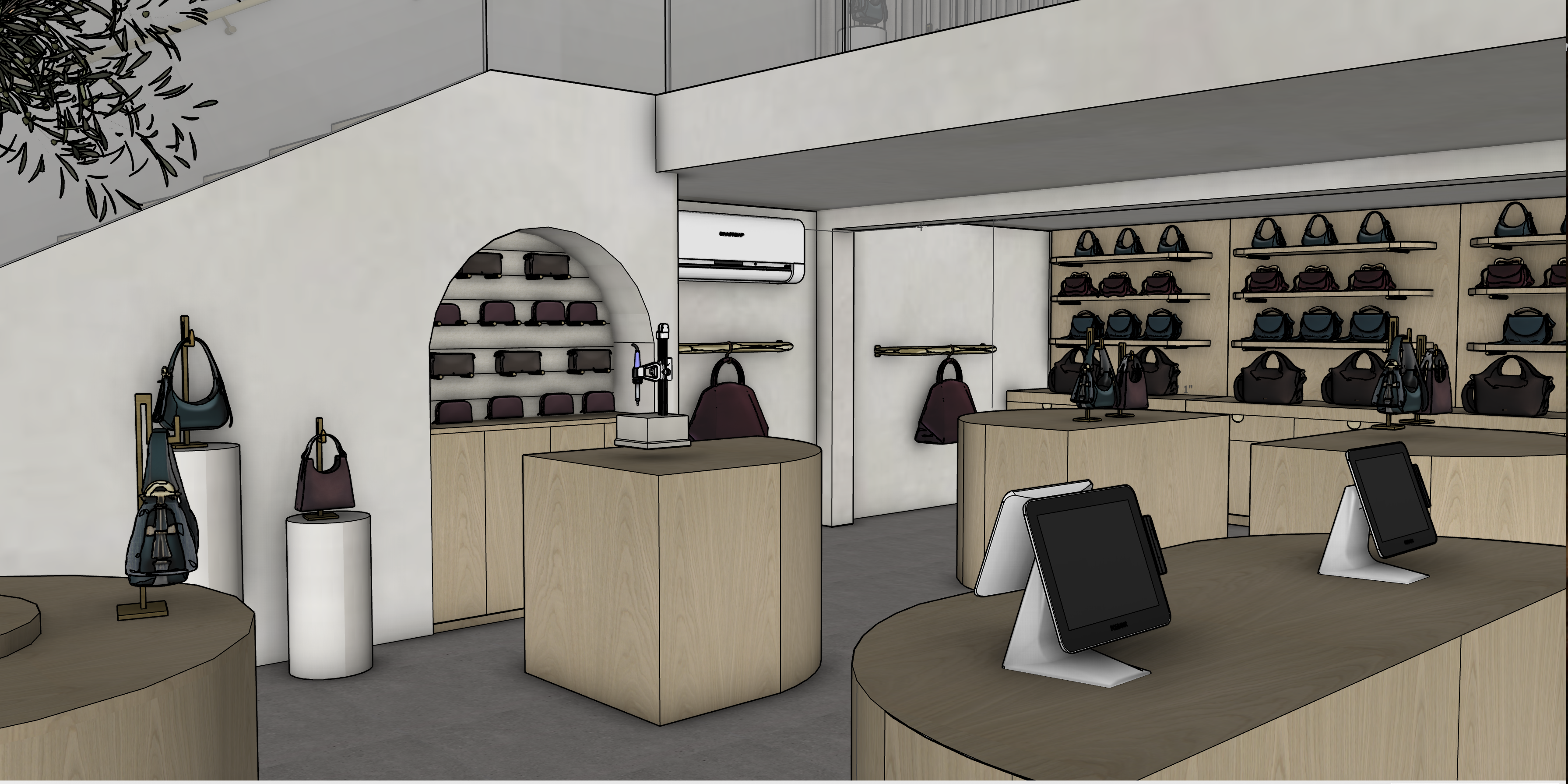 make photorealistic add recessed lighting under the mezzanine