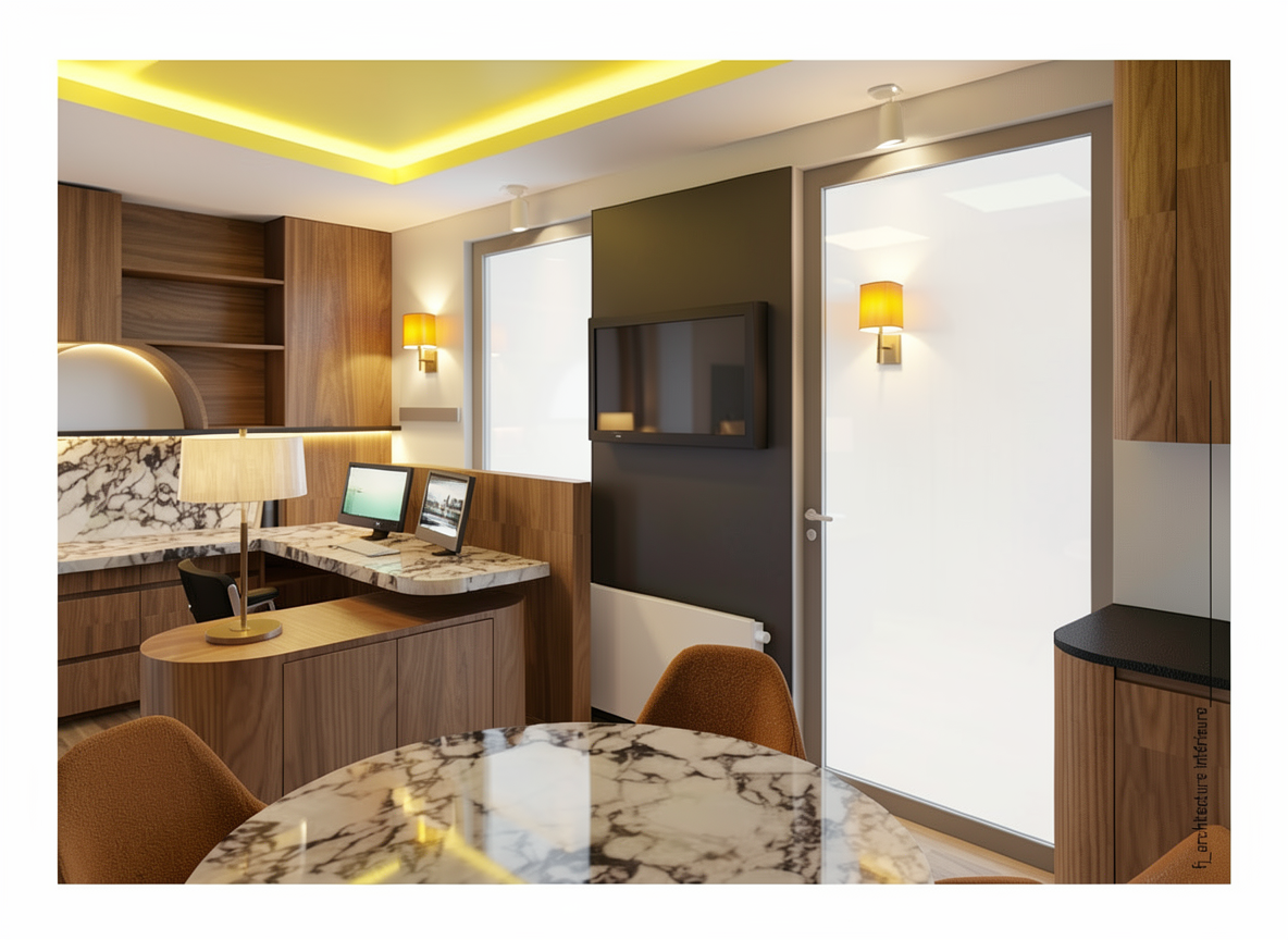 espace bureau mobilier bois h1386 plan de travail calacatta viola