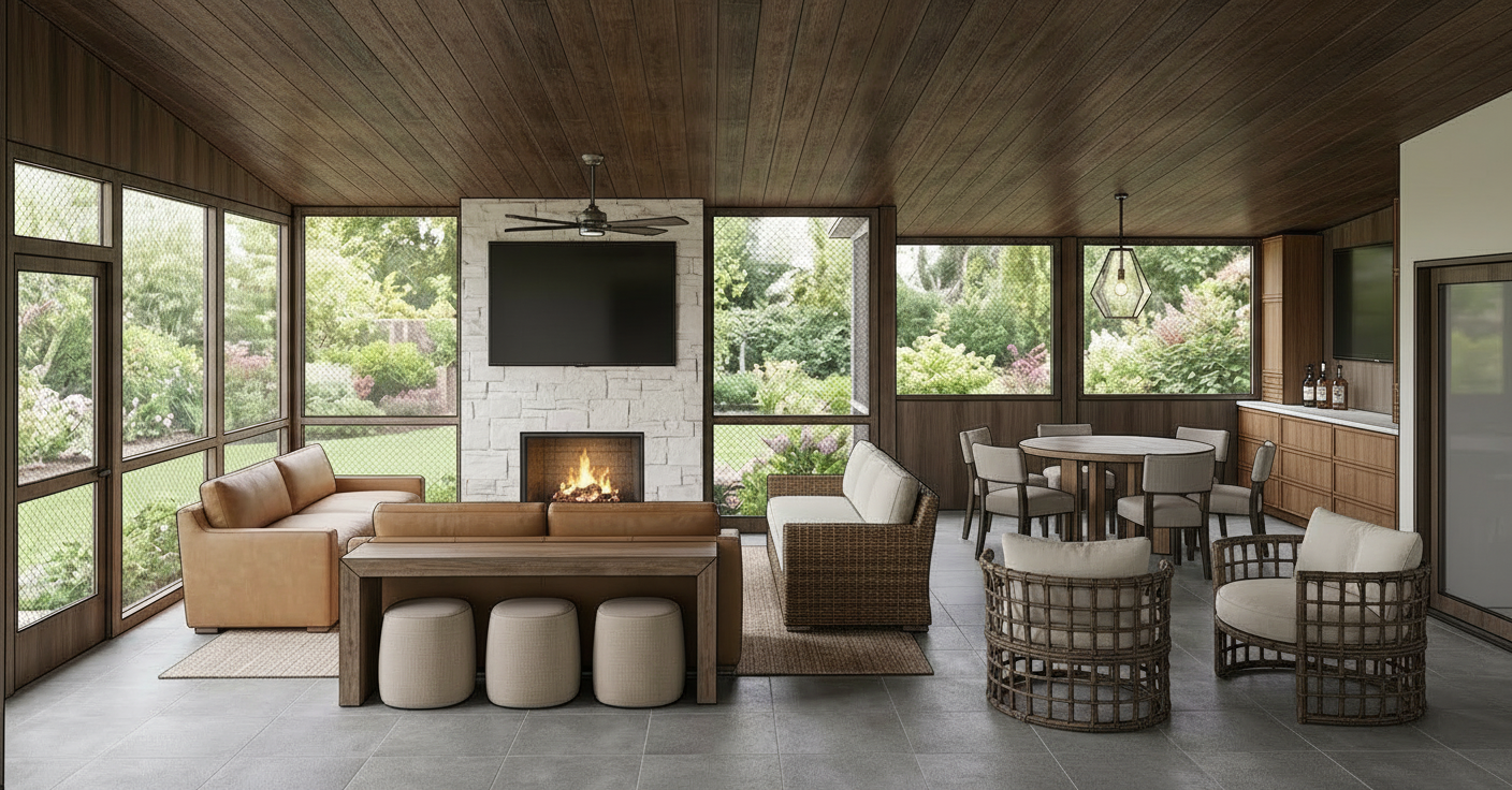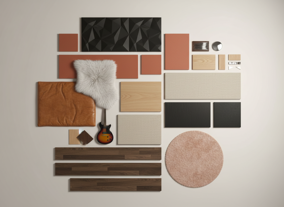 dark immersive stage environment with an oversized suspended led screens and light tubes behind him illuminated glowing yellow black drapes to perimeter