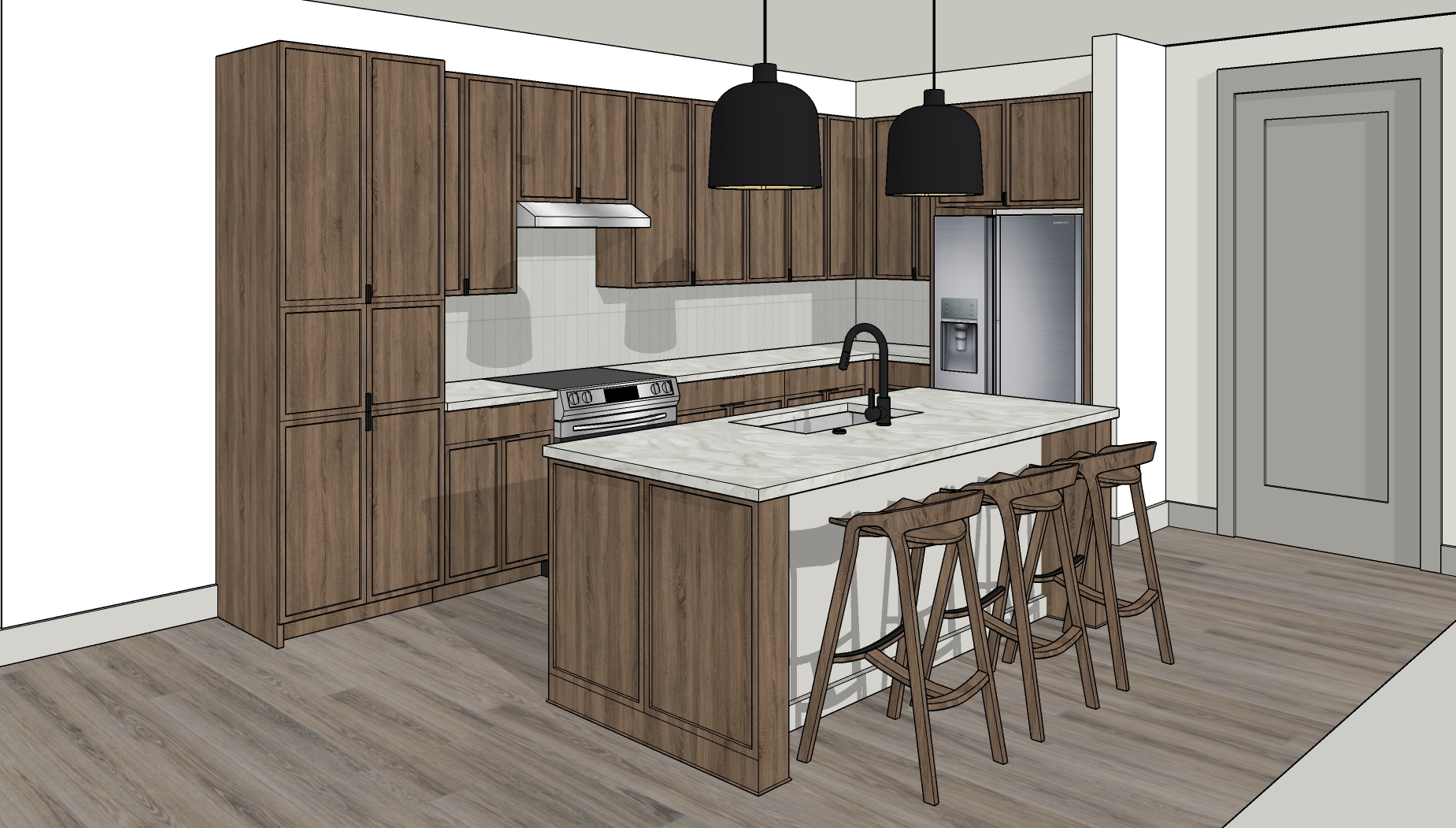 mid day rendering backsplash should be a warm white vertical stacked tile