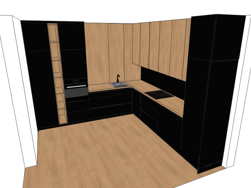 pracovna doska aj zastena je tiez vo farbe drevodekoru