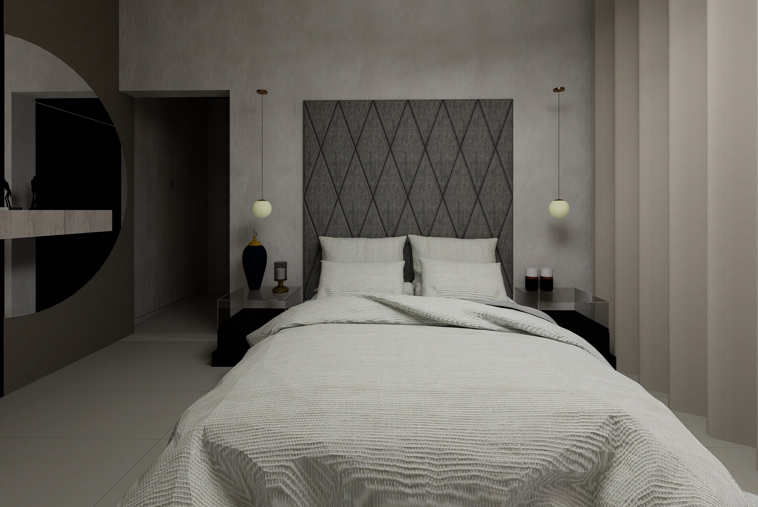 add cove lighting change bed headboard to very light grey color dim lighting