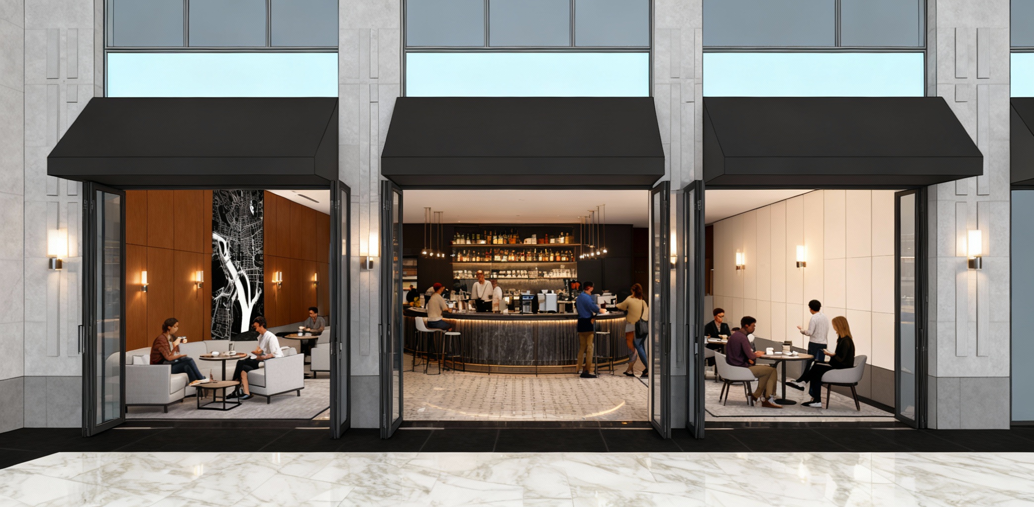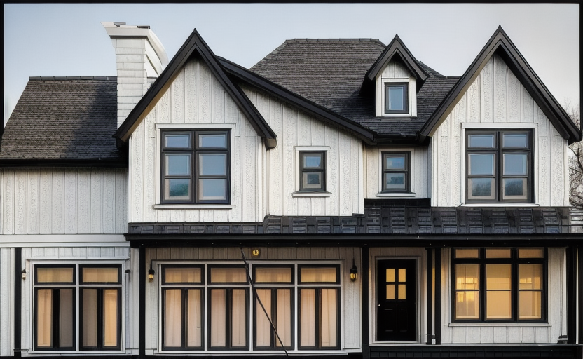 create a front elevation photorealistic image for this townhomes bay head shingle style in white with black accents window frames trimming and roof add some beach vibe elements