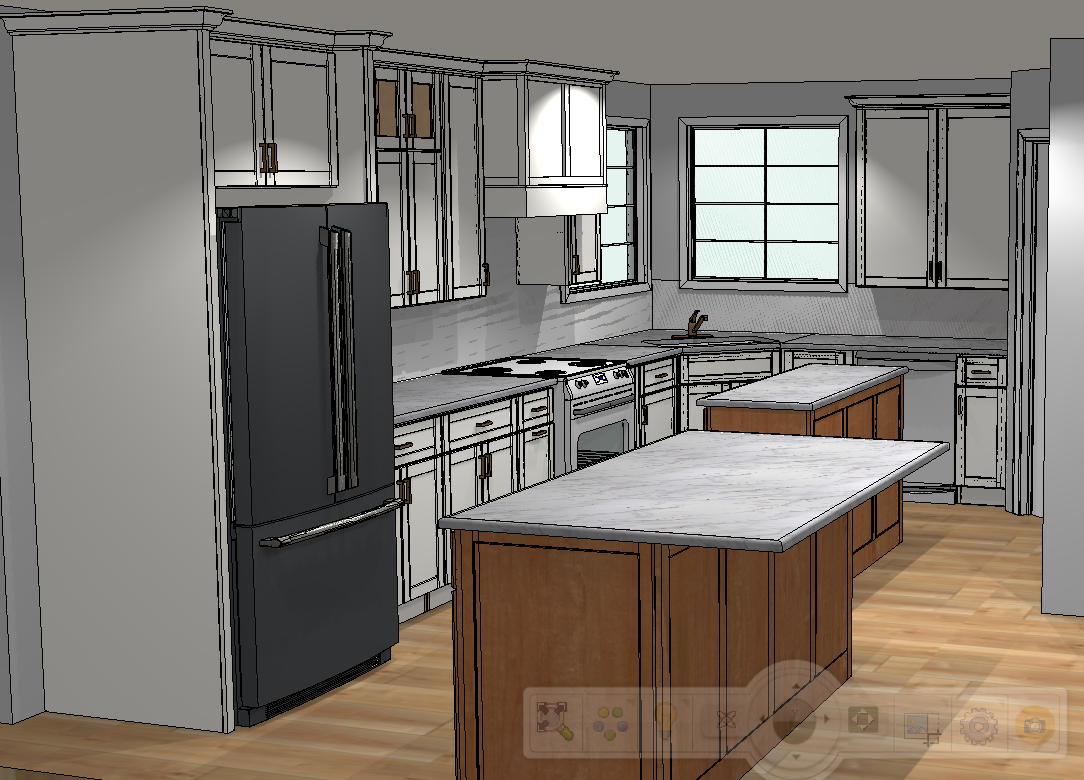 modern kitchen with warm floors white perimeter cabinets with two islands one narrow and one deeper