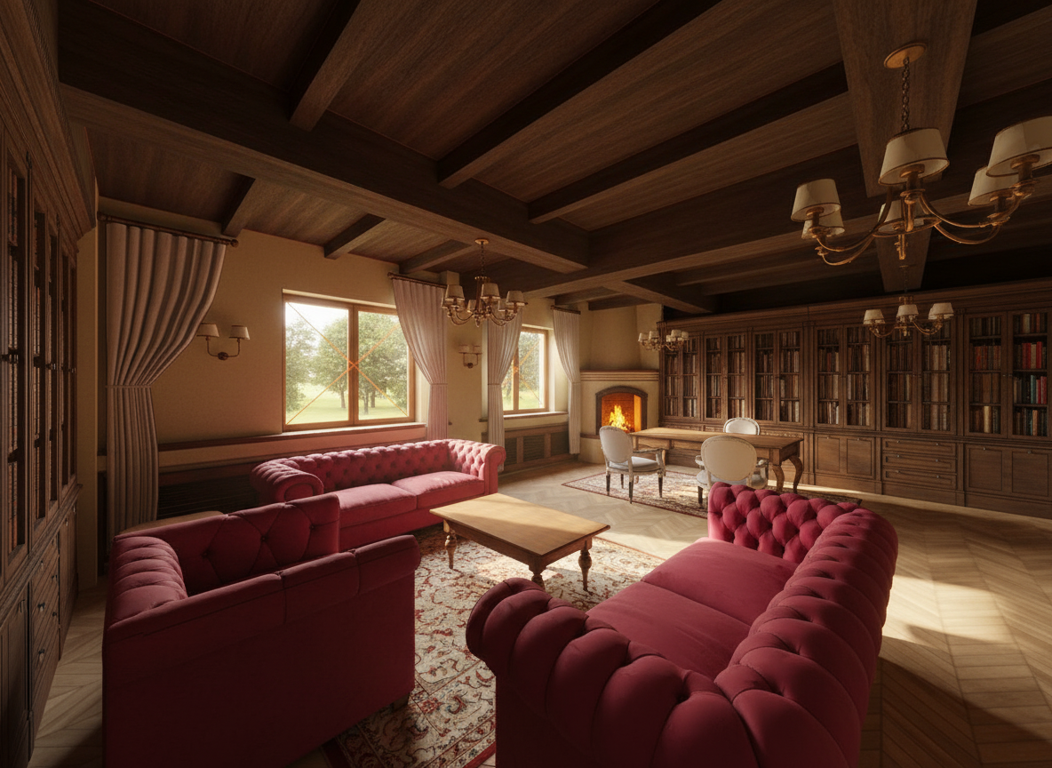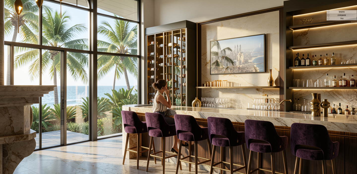 realistic render is an hotel entrance rispect the given materials