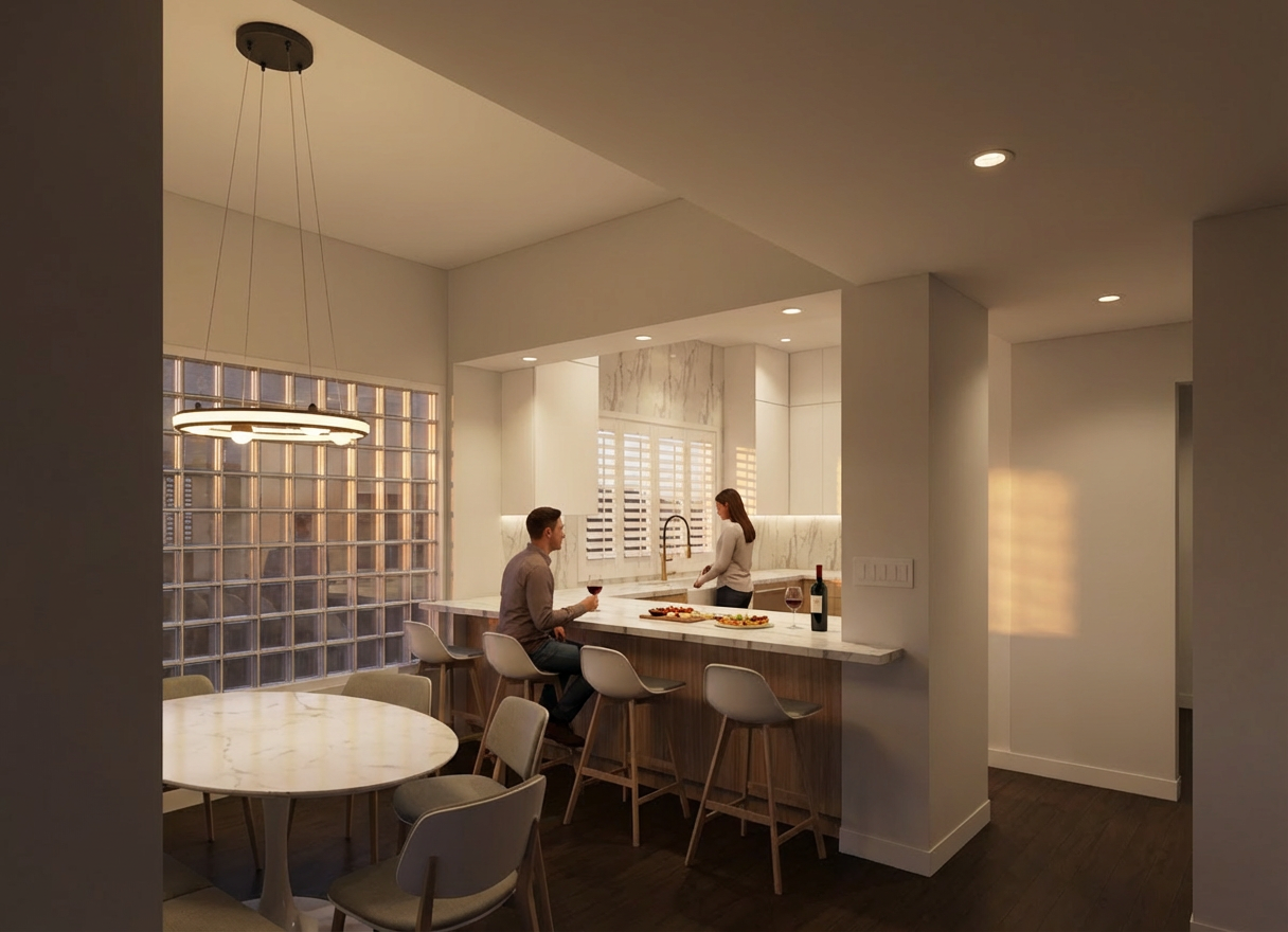 update to spring removing all snow and adding green grass and leaves on trees with landscaping in front of proch