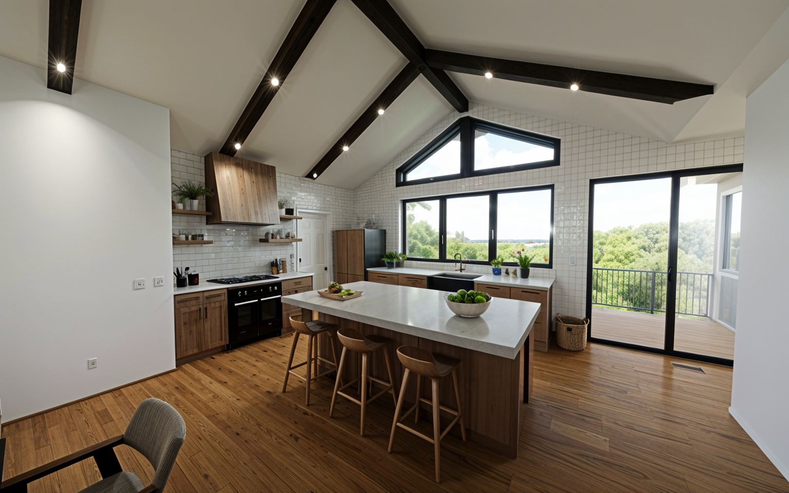 duplicate this building and make it into a multiple buildings viewed in a courtyard landscape in california sunny weather