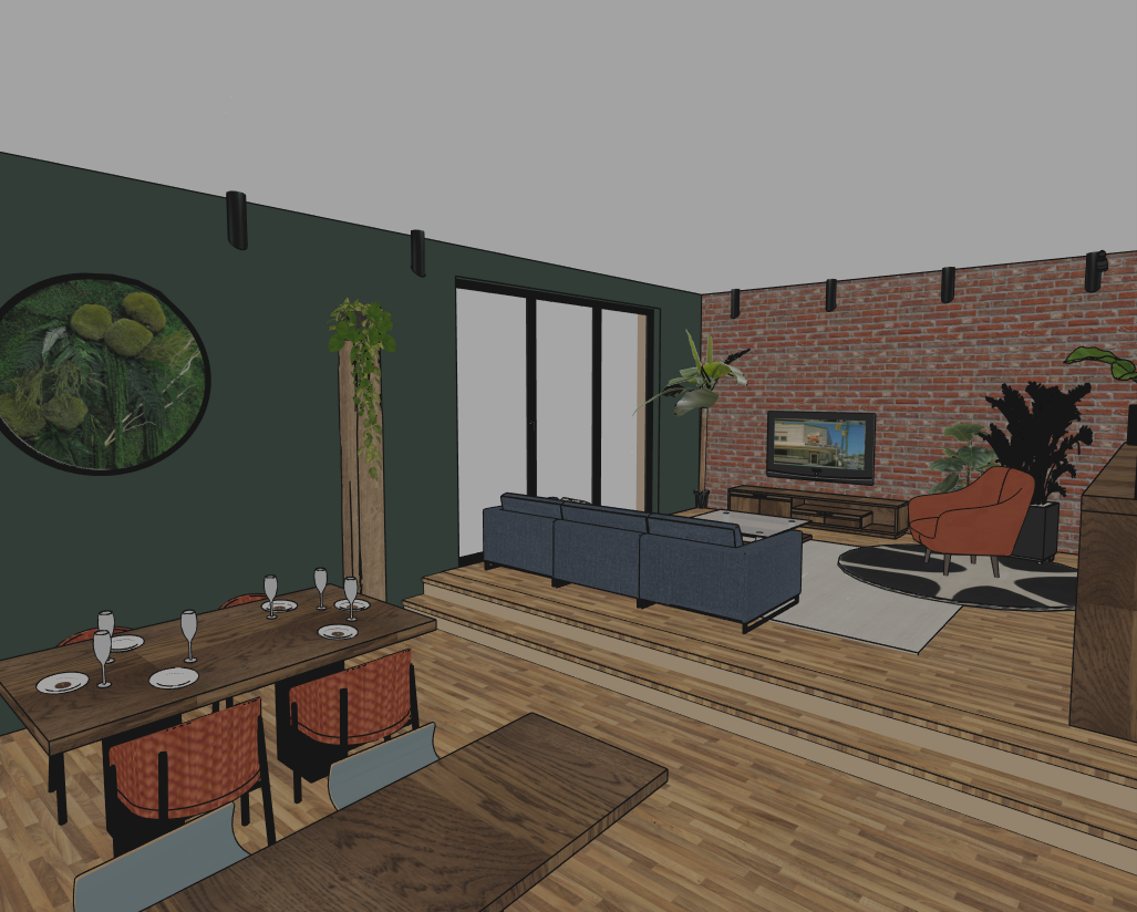 l gy loft hangulat kintr l bes t a nap de a l mpaf nyek kellemesen l tsz dnak a falakon mindegyik f nycs va egyforma a parketta t lgy sz n cs kos a l pcs kfokok alatt ledcs k vil g t a fal s t tz ld sz n a kanap k k el tte v kony b zs sz nyeg a fotel s a sz kek terracotta sz n ek a fotel alatt fekete feh r k rsz nyeg a fa b torok di sz n ek az ablakon t egy v rosi parkra l tunk r