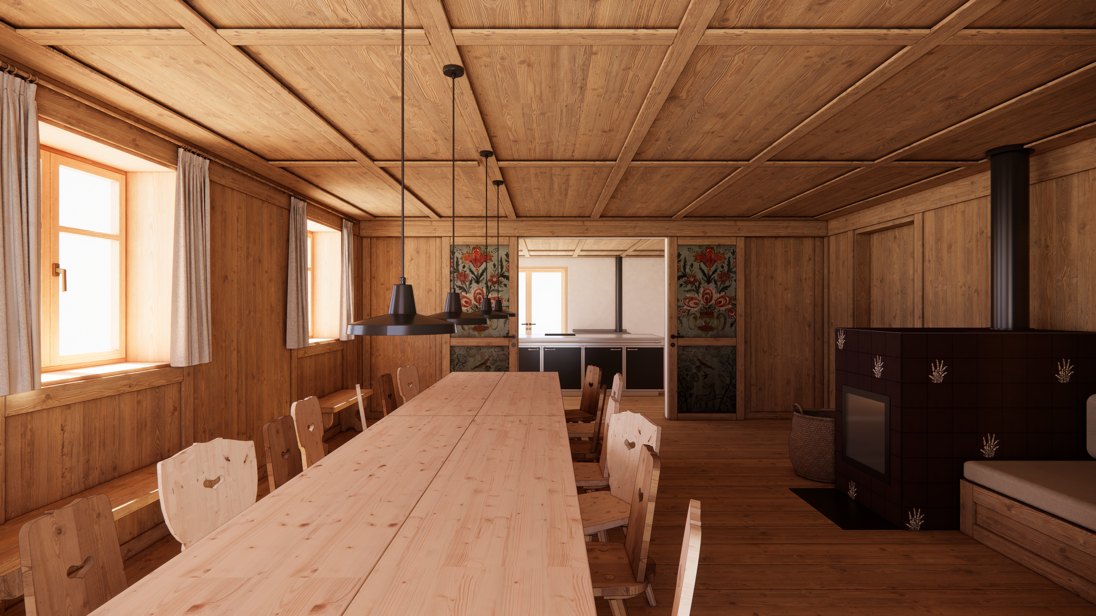 migliora l immagine render aggiungi fuori dalle finestre uno sfondo boschivo montano
