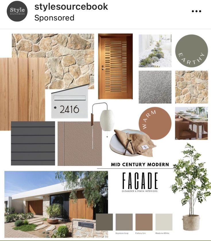 exterior shot maintain the renders materials and just chagne the colouring to align with the mood board