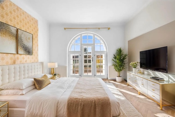 vykresli nov radi tory s vy st n m do zdi nad okny a pouze nad nimi vykresli nerezov trubky s hladkou pr svitnou spl vavou z clonou a t sn nad podlahou uprost ed m stnosti vykresli kr sn k i lov v ceramenn lustr vylep i sv tlo p idej romantickou atmosf ru a jemn slune n sv tlo c lem je pr miov prezentace real estate