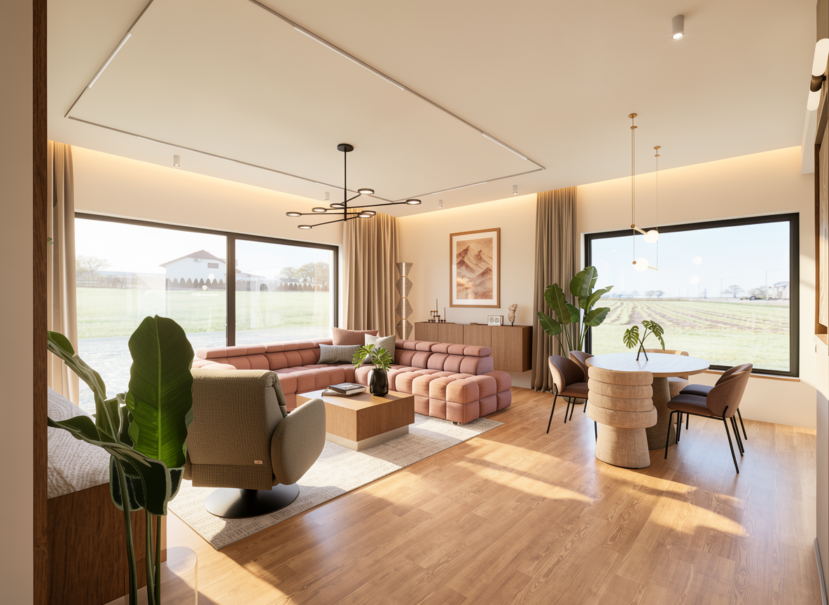 enhance this image to a highly photorealistic standard only by improving lighting quality light balance shadows reflections and overall texture material realism increase the realism and resolution of all existing surfaces and textures while preserving their exact original appearance improve sharpness depth and natural color grading subtly strictly do not change anything else do not alter composition layout camera angle proportions dimensions geometry furniture objects decor colors materials structure styling or placement of any element do not remove add redesign restyle replace or invent anything do not modify shapes or sizes the final result must be the exact same image only with significantly better lighting realism and higher quality textures material definition
