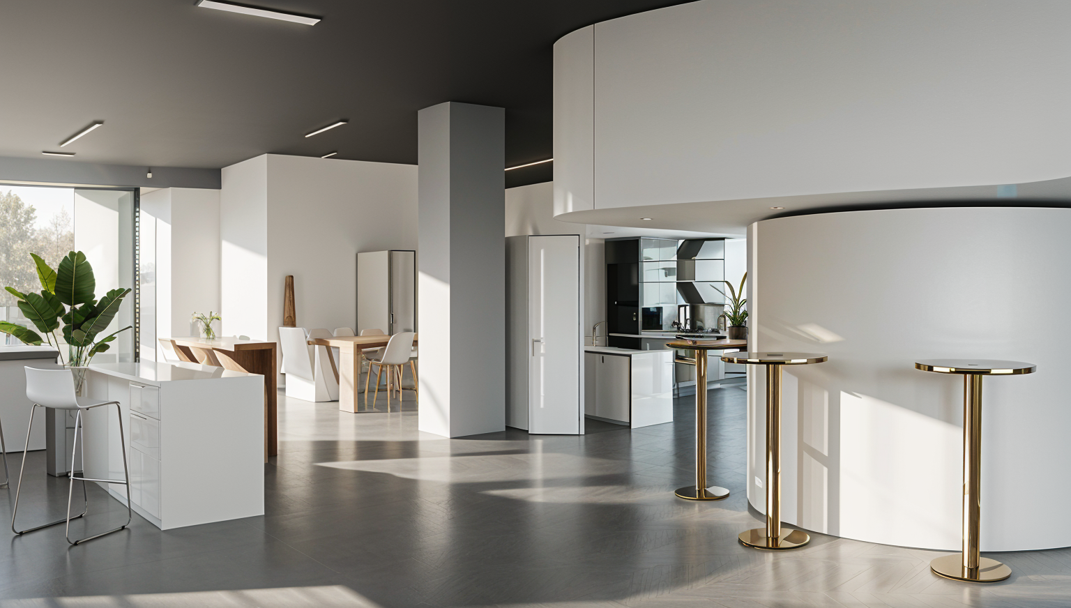 use the provided screenshot strictly as the base image keep the exact camera angle layout proportions wall positions door positions and furniture placement do not change the architecture or geometry convert the scene into a highly realistic render of a modern minimalist apartment hallway on the right side there is a continuous built in wardrobe the wardrobe doors are in a chalk color soft warm off white matte finish with long vertical integrated handles one of the wardrobe doors contains a full height mirror panel integrated into the wardrobe front next to the wardrobe the brown vertical element is a wall cladding panel made of natural oak wood the oak has a calm subtle grain with a soft radial pattern elegant and not overly rustic the wood tone is warm natural oak the floor is natural oak wooden flooring slightly lighter than the oak wall panel use long planks with a matte finish and subtle wood grain the interior doors visible in the corridor are pure white with a smooth matte finish minimal modern design walls are smooth white plaster with a soft matte texture lighting should be natural and soft coming from daylight spilling in from the adjacent rooms combined with subtle warm interior lighting to create a pleasant residential atmosphere use realistic global illumination soft shadows and physically accurate materials do not add or remove furniture or architectural elements