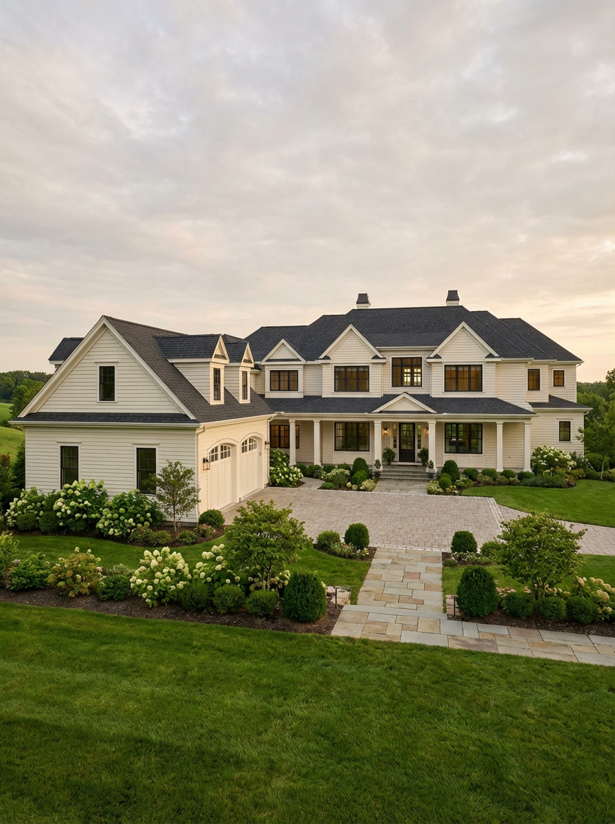 make the garage on the left 3 bays and 3 garage doors
