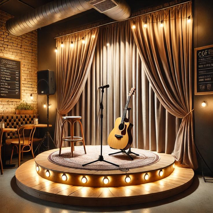 this image feels too much like ai make it more realistic and alter the stage vibe to feel more retro american rustric marquee lighting country american brick materials