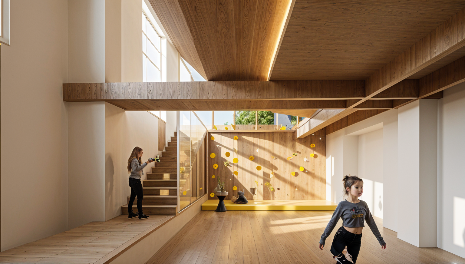 a cozy elegant speakeasy rum bar lounge interior with a warm and inviting atmosphere the bar counter is adorned with varied amber glowing rum bottles the red bar is lacquered as well as the lacquered red cabinet behind to the left is the terrace and a lush green plant behind the glazing on the glowing terrace outside use a rich dark wood tone for the panels accentuated by soft ambient lighting the seating areas feature plush linen chairs in a muted rose pink paired with round wooden tables highlight the modern decor with soft sofa against a leather patterned wall the ceiling is a soft pale brown light linen textured fabric complemented by carpet floor aim for a sophisticated and serene ambiance