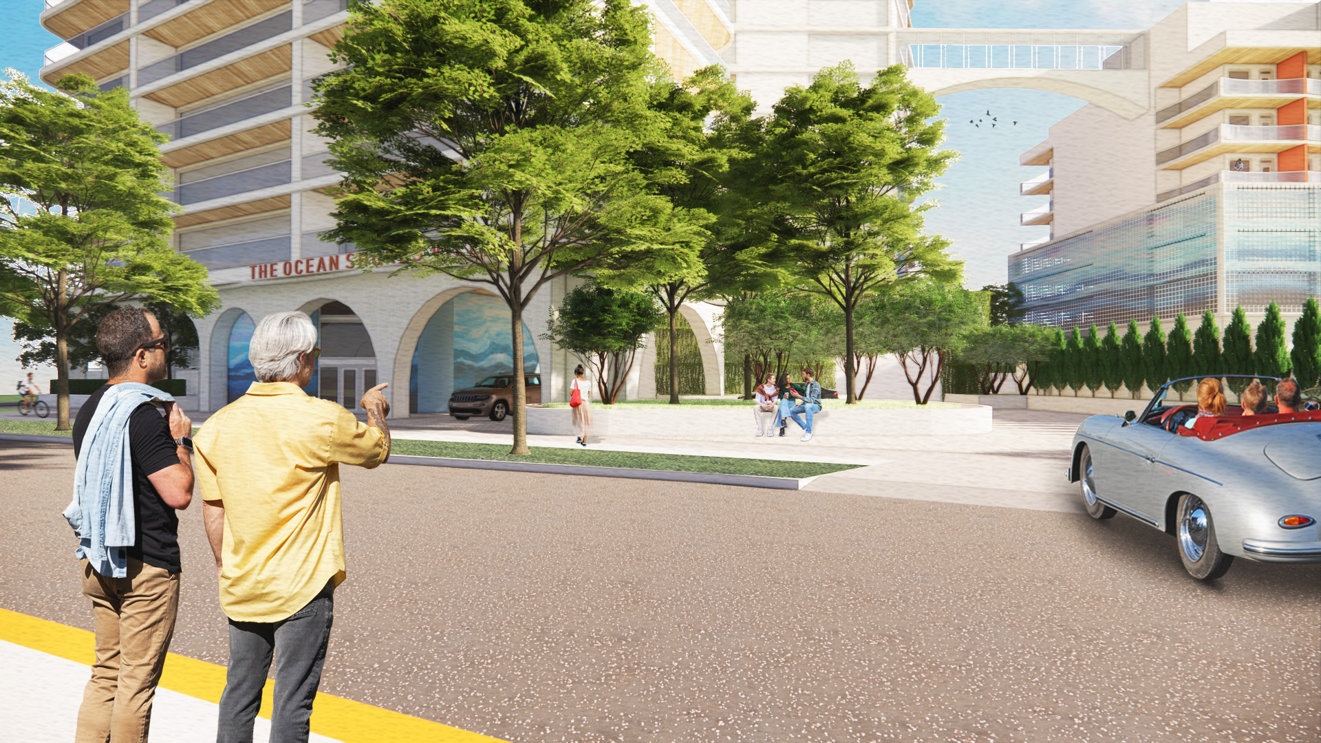 convert to a conceptual architectural sketch with black ink linework and soft watercolor washes use loose expressive construction lines with varied weights and slight imperfections apply warm muted color washes ochre amber light rust selectively to primary building volumes keep shading minimal and atmospheric convert to a high end architectural competition rendering using precise black ink linework and controlled watercolor washes use clean confident lines with subtle variation in weight reduce sketchiness and remove unnecessary construction lines apply restrained semi transparent watercolor washes in a limited warm palette ochre amber soft rust to primary building volumes with smooth gradients and intentional edge control maintain crisp edges at key architectural intersections keep glazing structure and key details sharp and legible while simplifying secondary elements subtly enhance depth with light tonal layering and soft cast shadows fade site context into minimal desaturated grayscale washes with very low contrast and minimal linework to maintain focus on the building overall tone elegant balanced and professional suitable for competition boards preserve original composition and camera ensure consistent line precision wash opacity and color palette across all images in the series